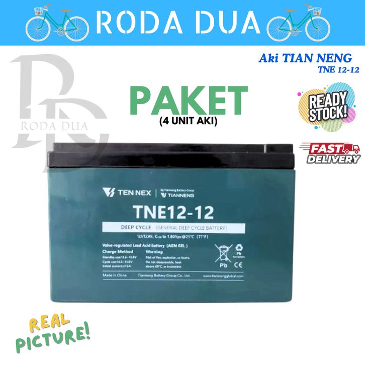 AKI KERING BATTERY TIENNENG SEPEDA LISTRIK SELIS 12V/12AH PAKET 4 BIJI: P 15 x L 9.8 x T 9.5 cm