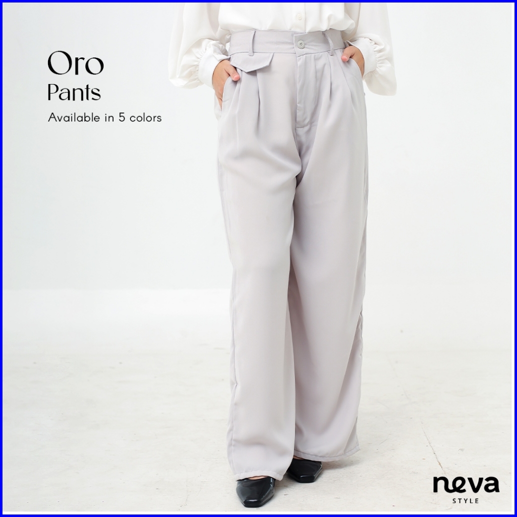 Neva Style - Oro Pants Celana Kerja Wanita Panjang Kekinian Loose Pants Polos Jumbo Size