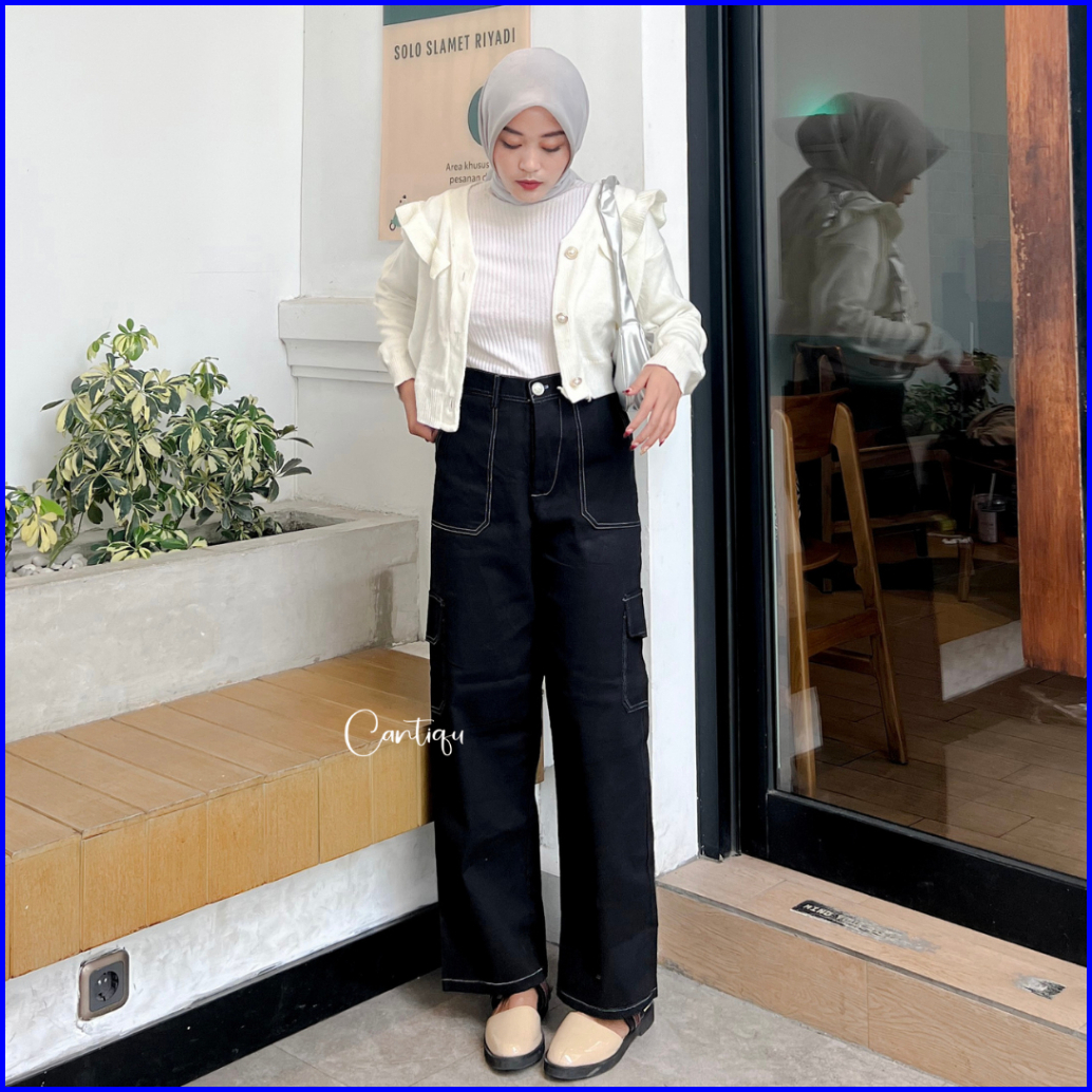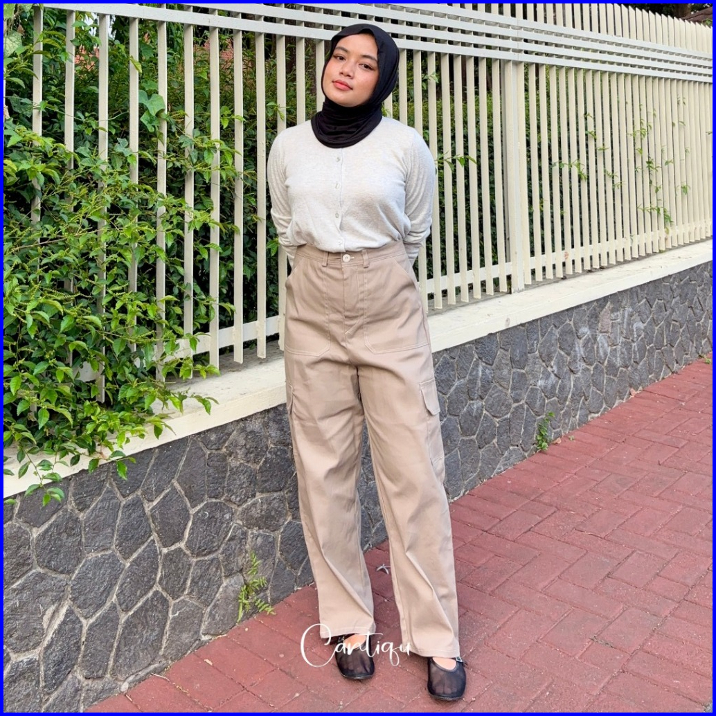 Cantiqu - Abella Cargo Pants Celana Panjang Kargo Korean Style Katun Twill