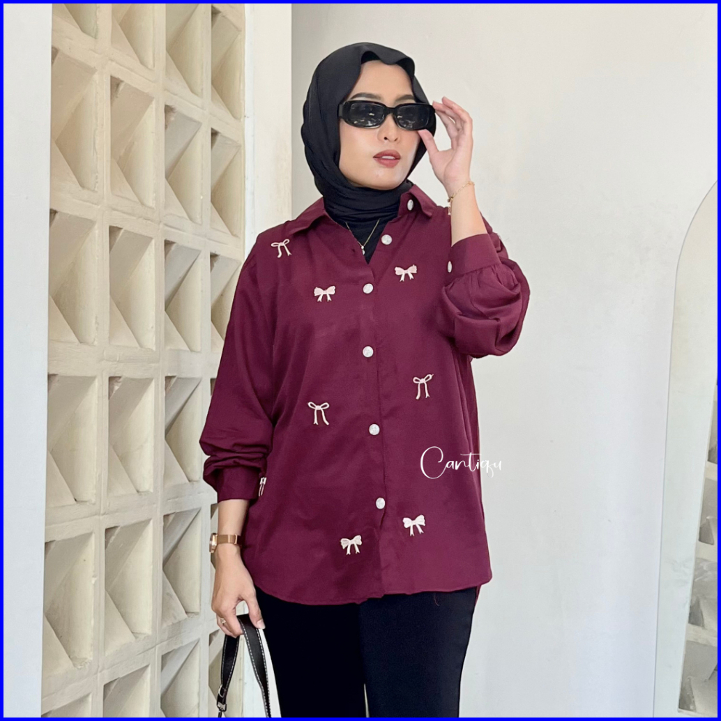 Cantiqu - Blouse Bordir Pita Atasan Wanita Rayon Twill Pitaloka