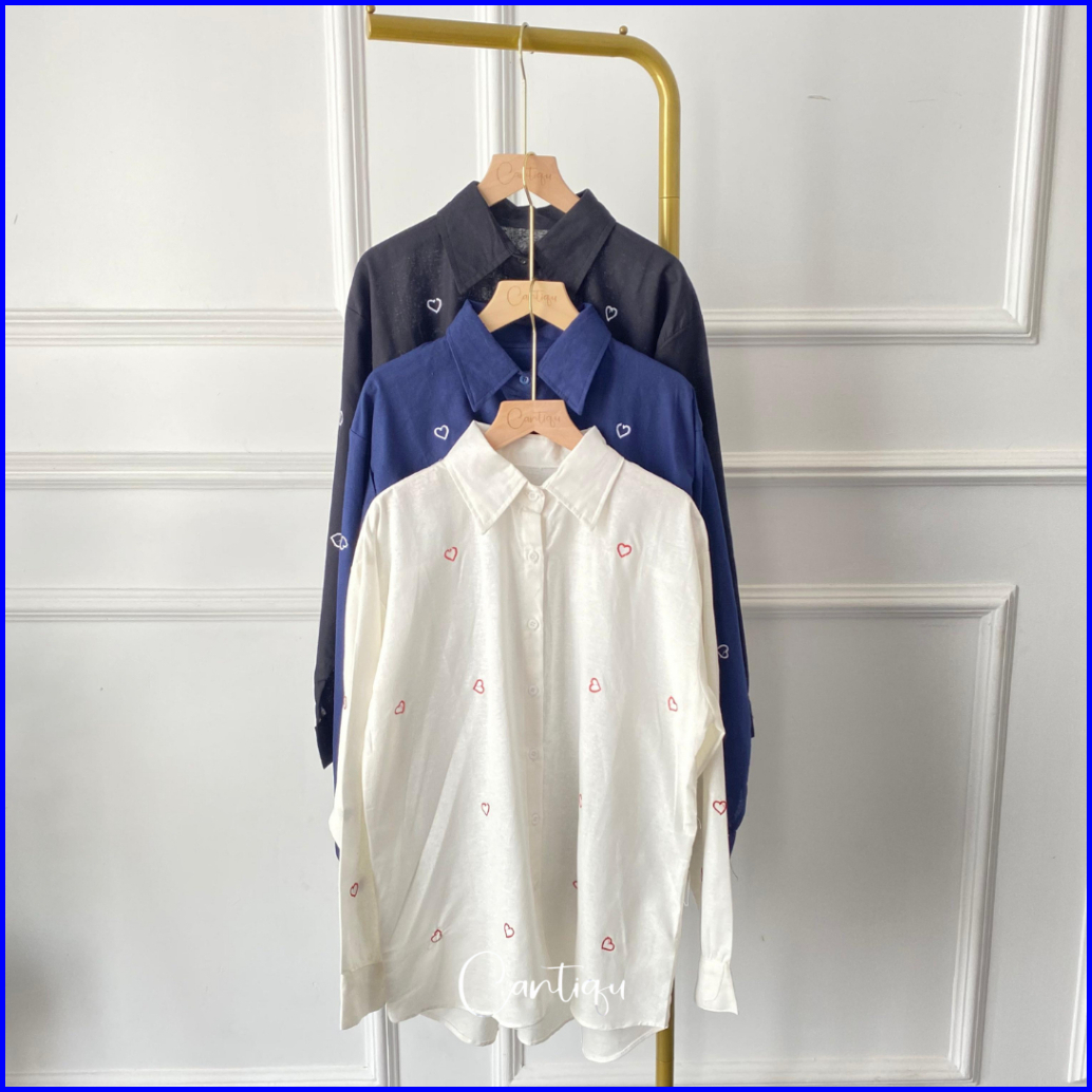Cantiqu - Kemeja Linen Bordir Lupy Atasan Blouse Wanita