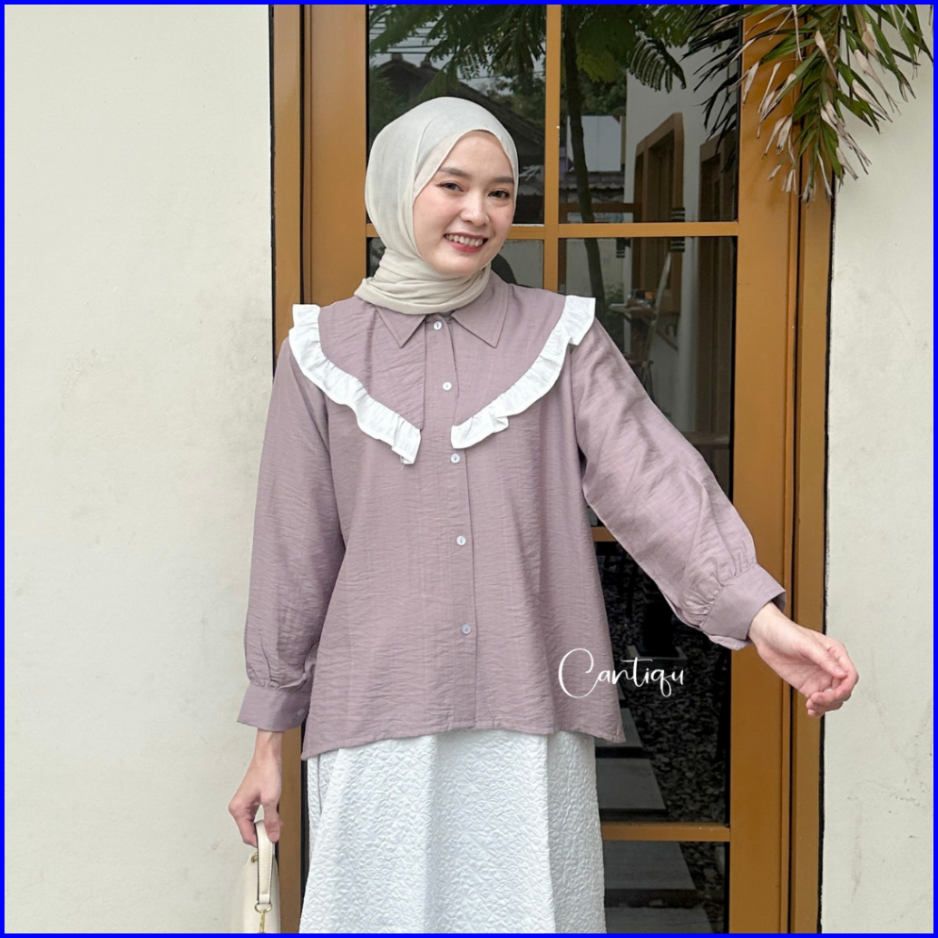 Cantiqu - Blouse Ruffle Pololinen Valla Atasan Kemeja Wanita