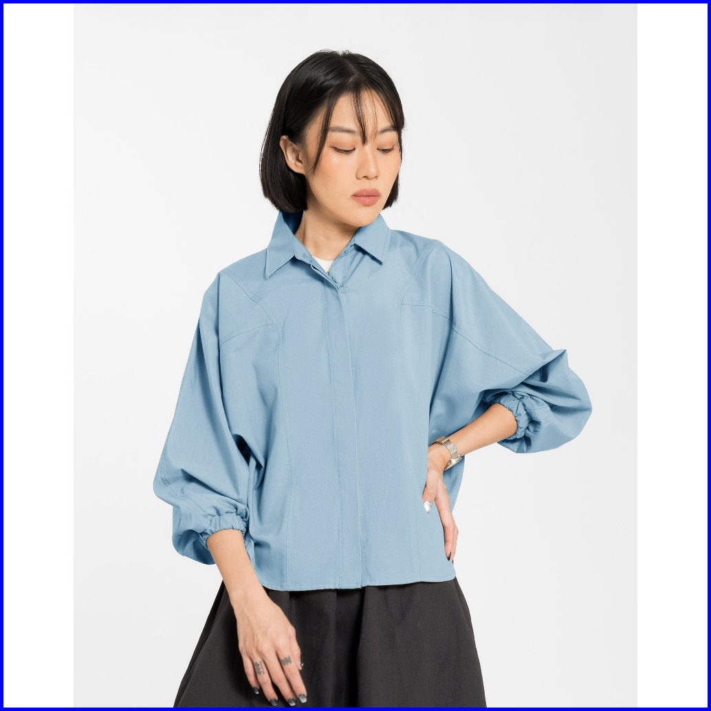 Malova Adelin Blue Kemeja Wanita Lengan Balon Kemeja Formal Bahan Katun Untuk Gaya Elegan