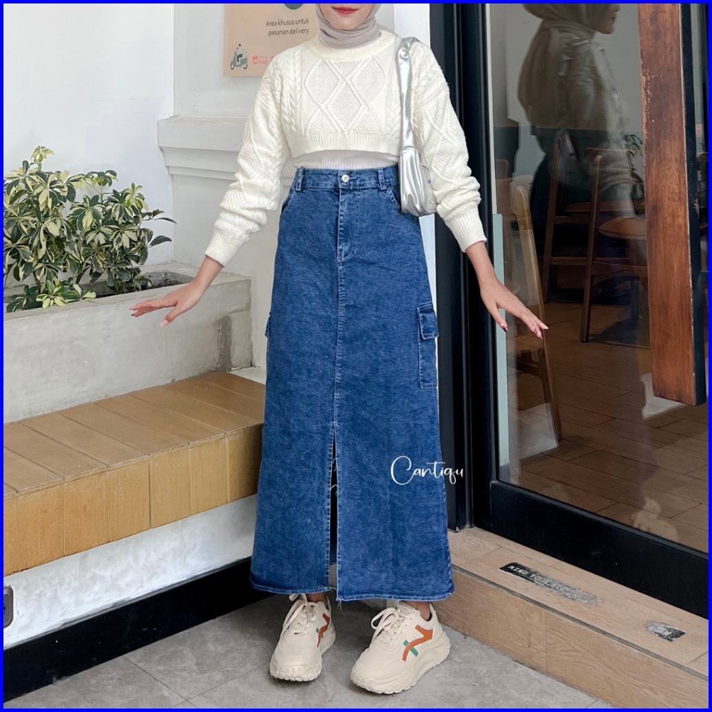 Cantiqu - Namira Skirt Rok Jeans Standart Rok Jeans Size Jumbo