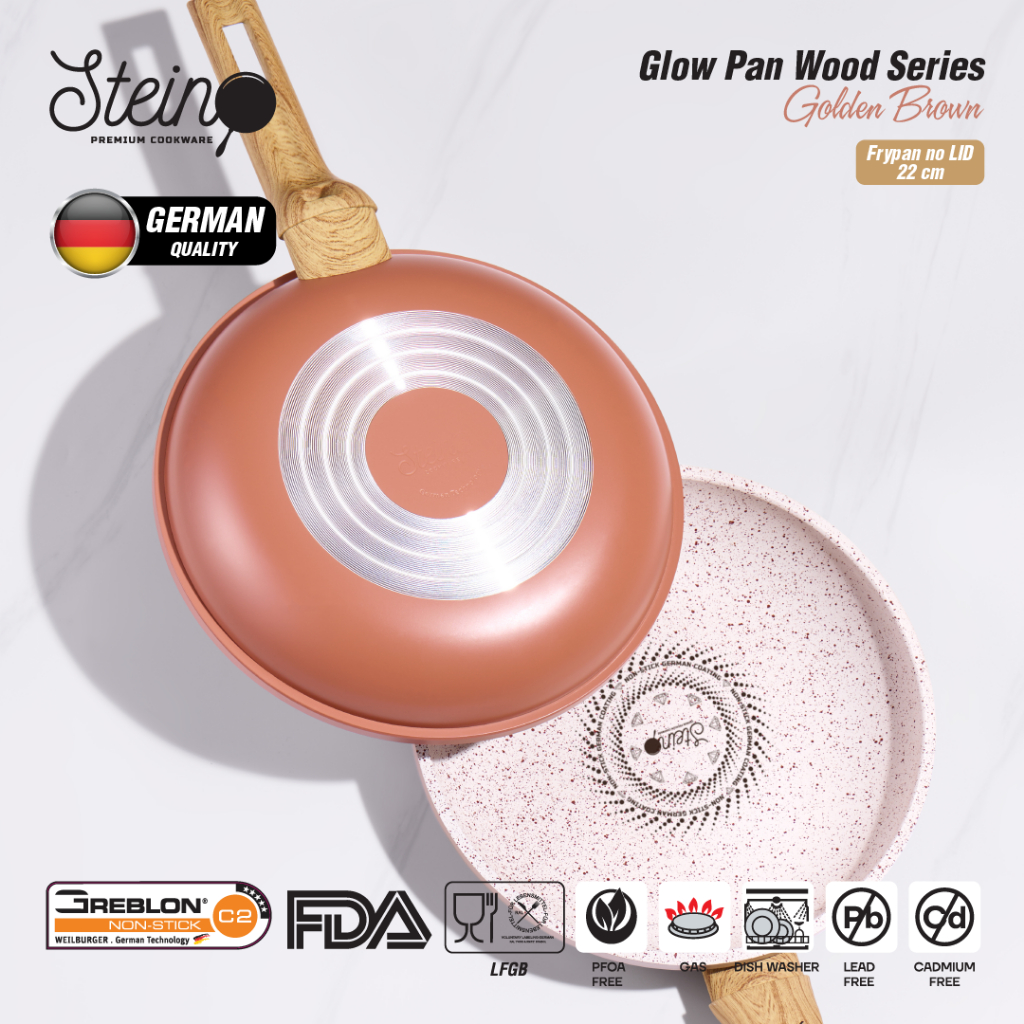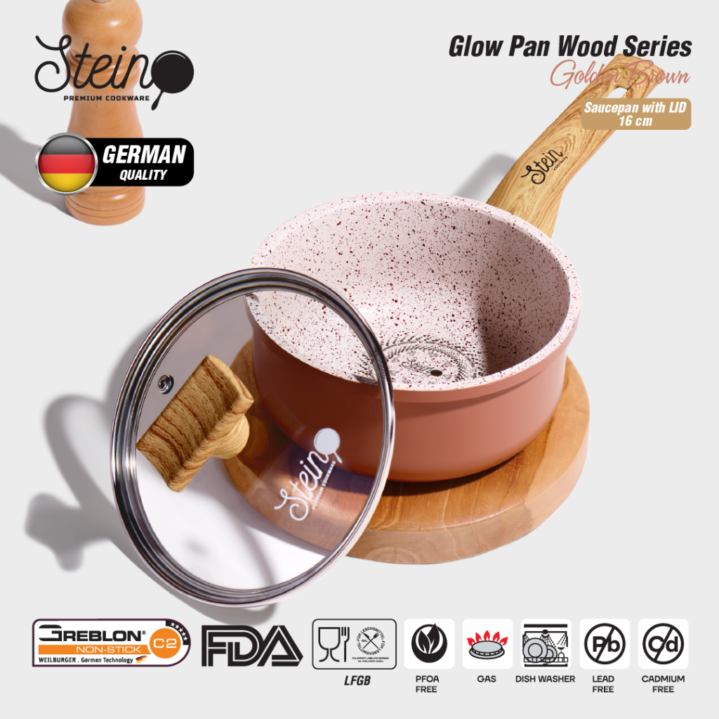 Stein Cookware Official Glowpan Mini 3IN1 Wood Handle Panci Set Marbel Anti Lengket