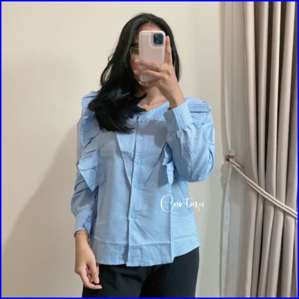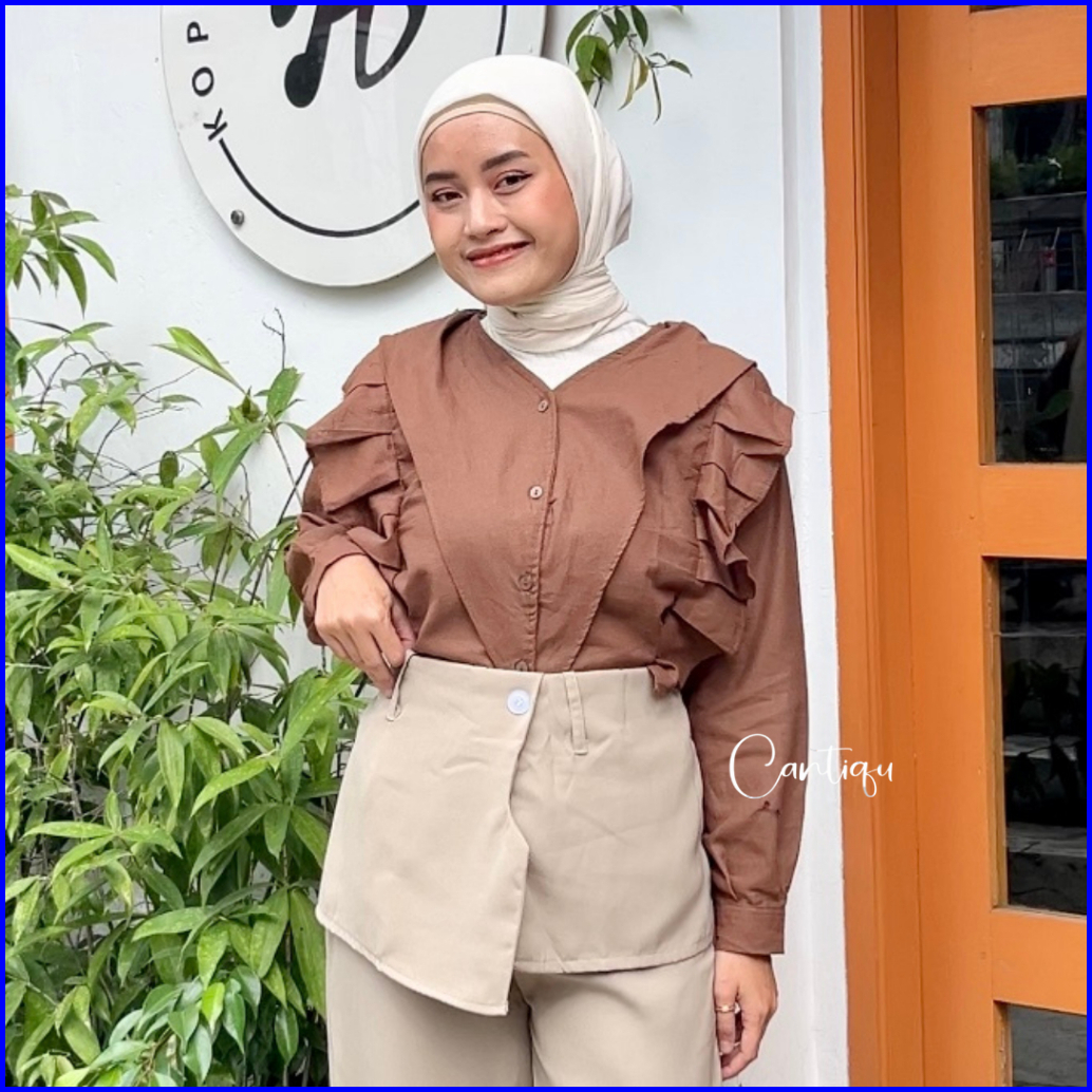 Cantiqu - Noya Blouse Linen Atasan Wanita Ruffle Polos