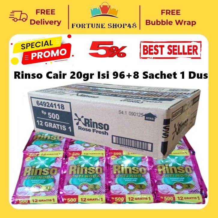 Rinso Cair 20gr Isi 96+8 Sachet Kemasan 500 1 Dus - GRATIS ONGKIR