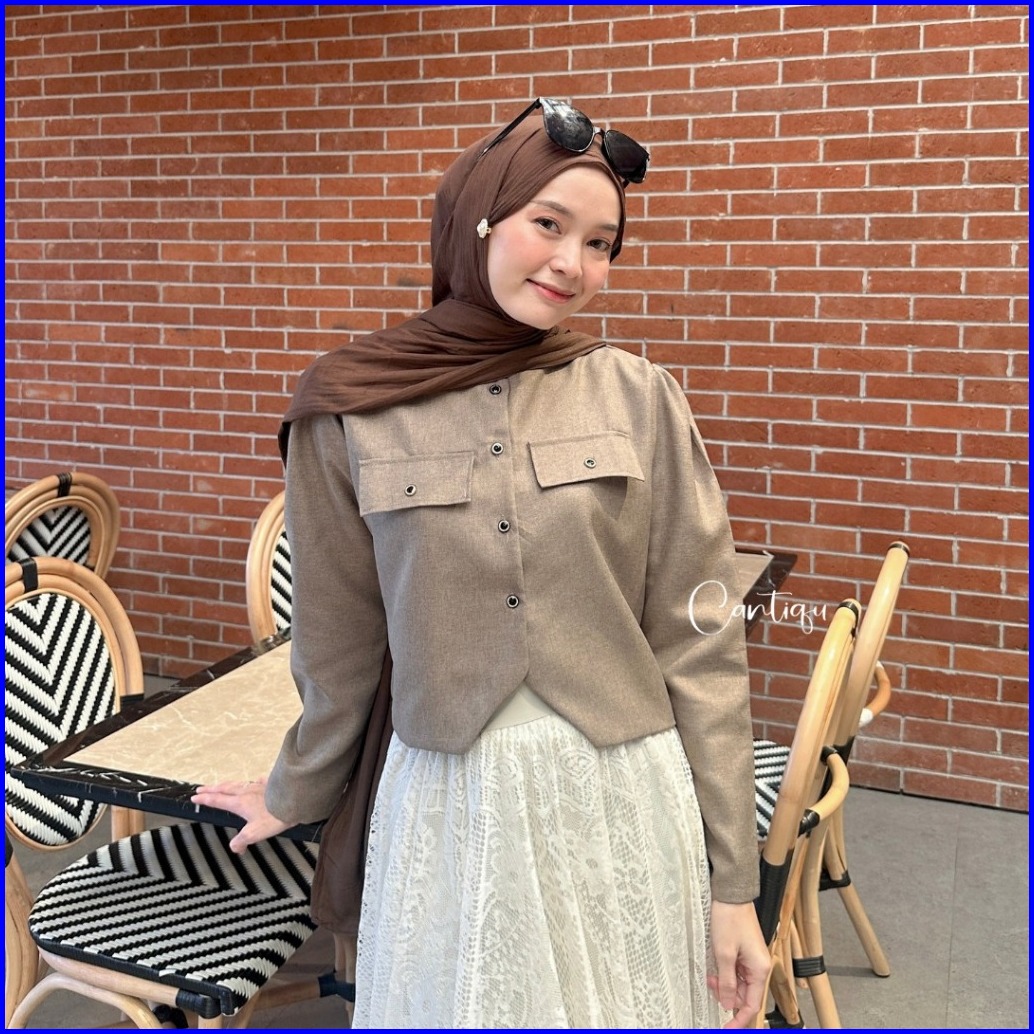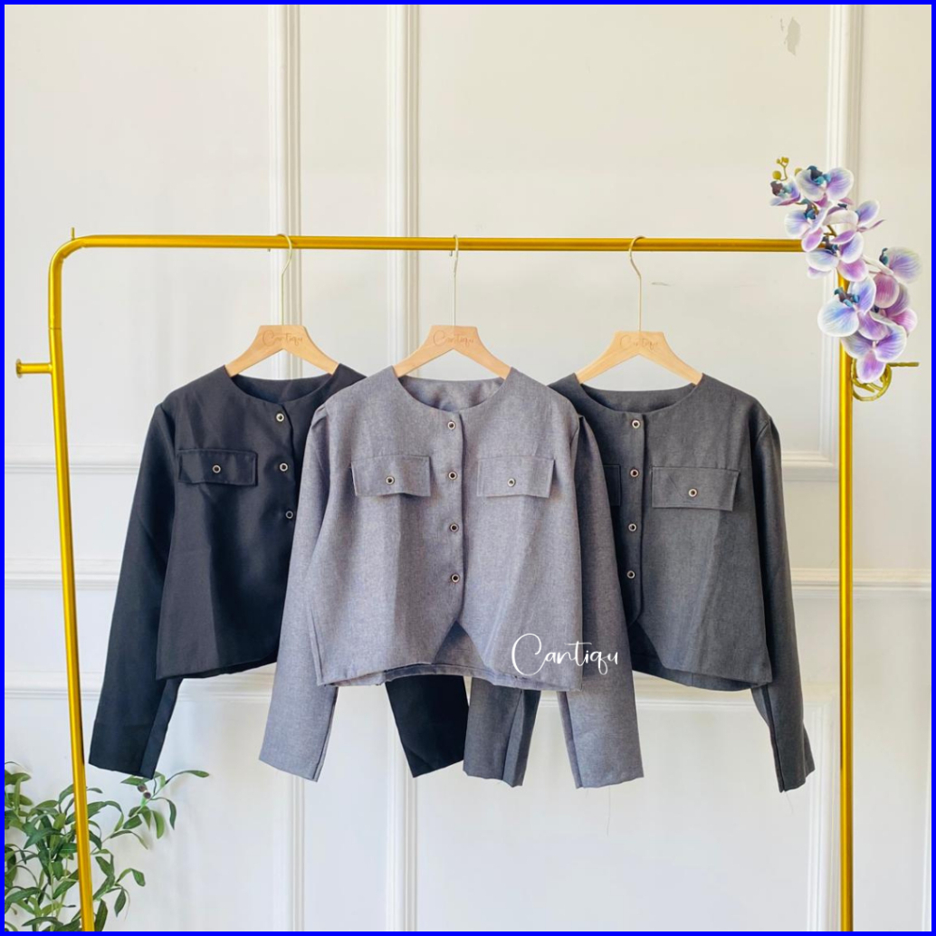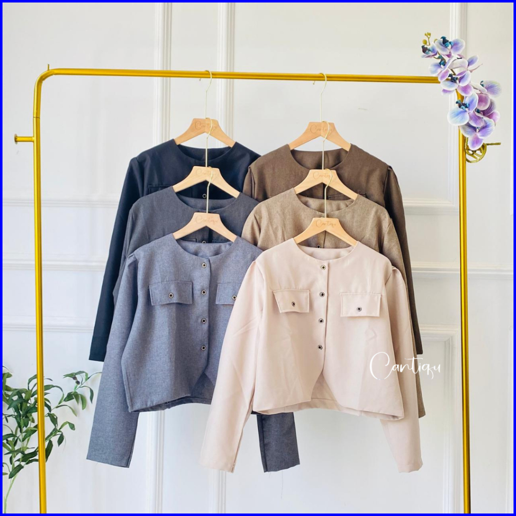Cantiqu - Alina Outer Button Pakaian Wanita Kemeja Blazer Jumbo Crop Lengan Panjang
