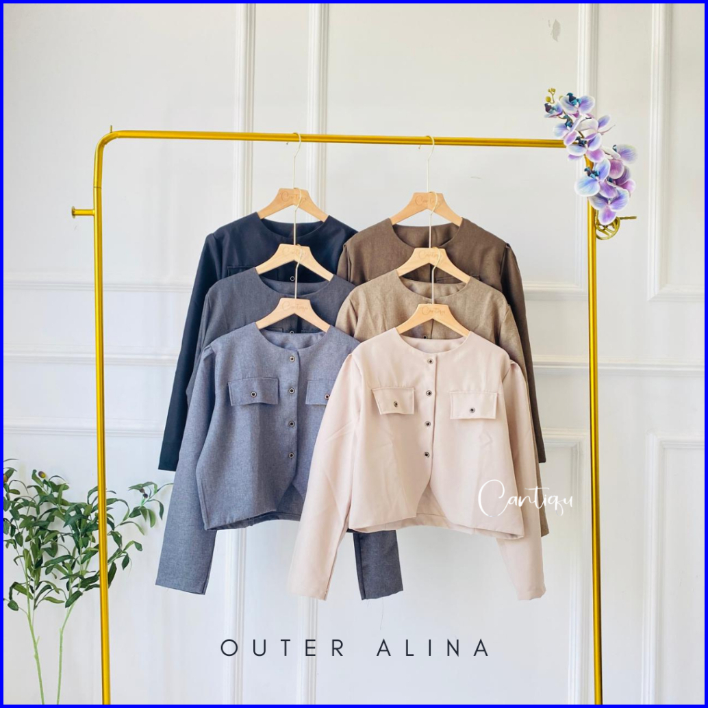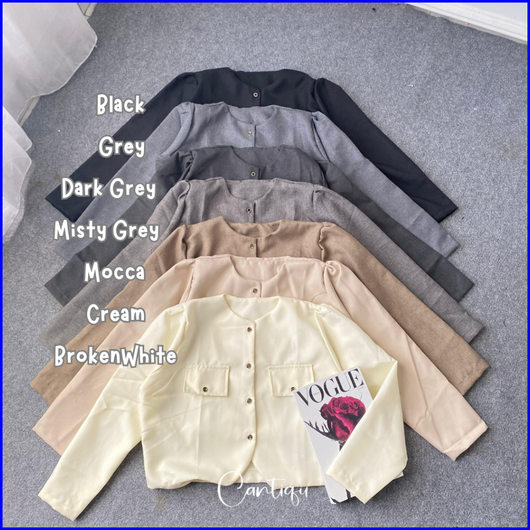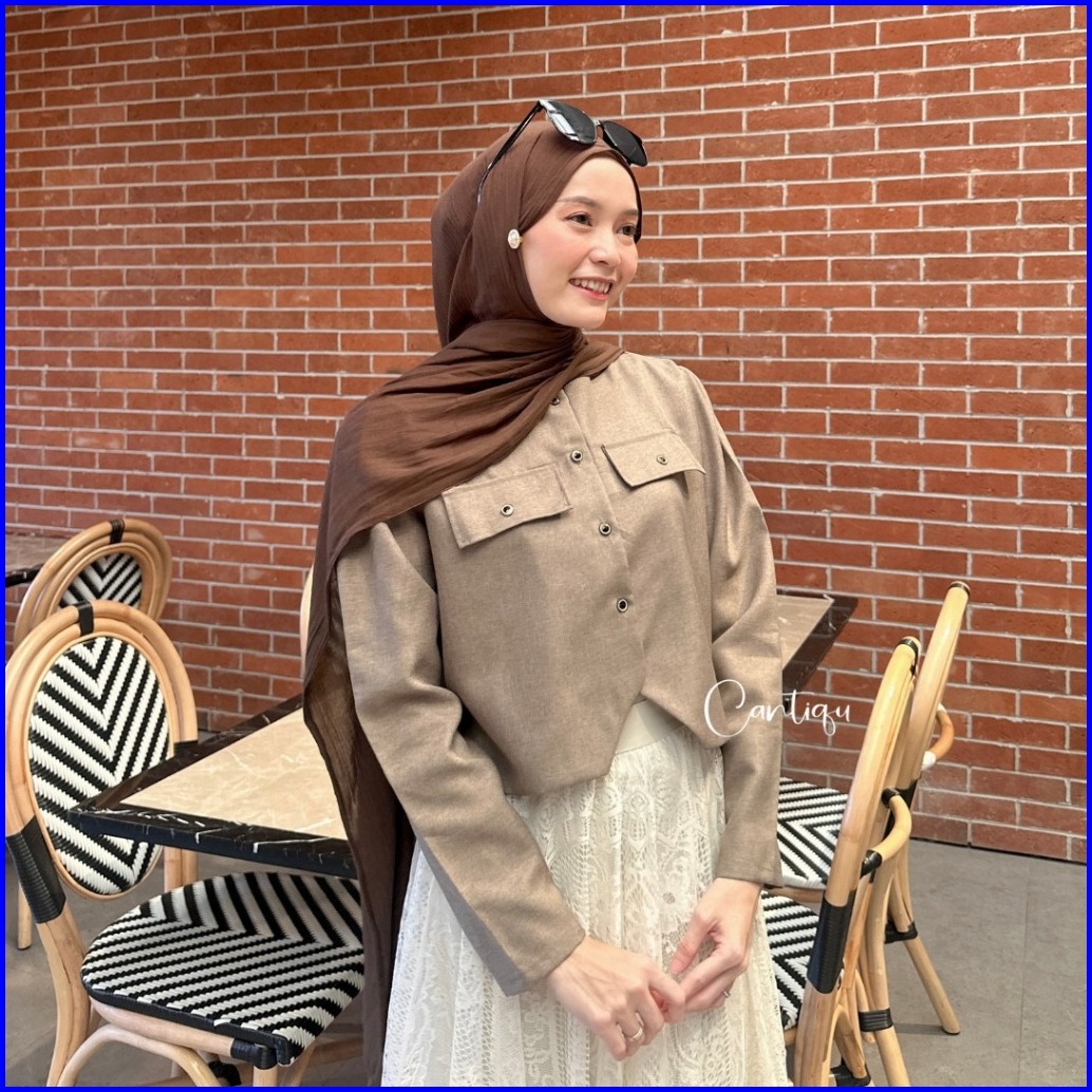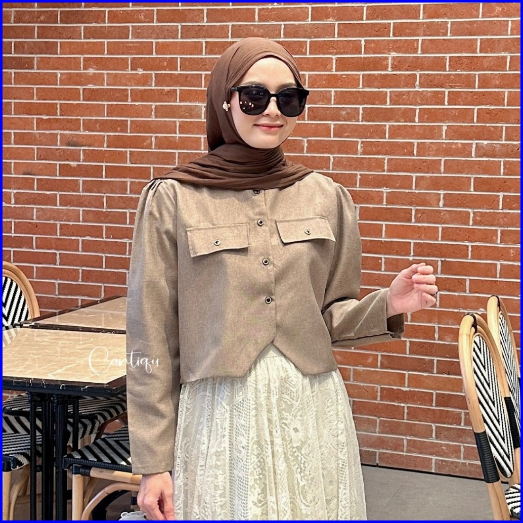 Cantiqu - Alina Outer Button Pakaian Wanita Kemeja Blazer Jumbo Crop Lengan Panjang