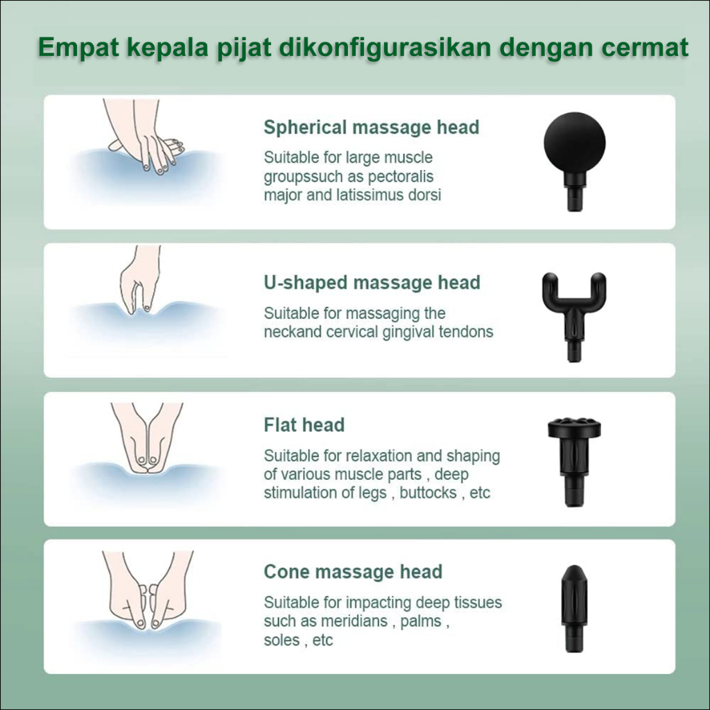 []Pijat Otot Mini Elektrik Genggam Massager 4in1 dengan Banyak Kepala Pijat