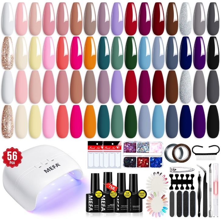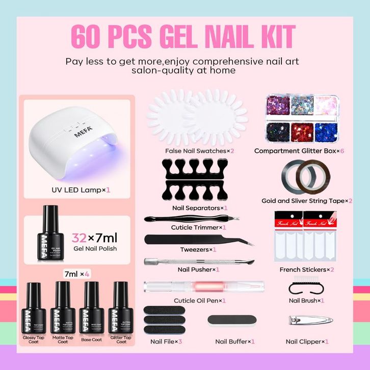 [Star] 35Pcs Gel Nail Kit UV Light 48W Nail Lamp 12 Warna Gel Gel Base dan Top /Nail Glitters/Striping