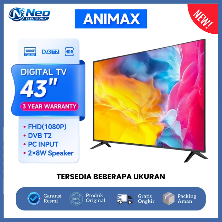 TV SMART ANDORID DIGITAL ANIMAX 43 40 32 27 25 24 22 21 INCH TELEVISI LED 4K UHD FHD SUARA JERNIH HARGA MURAH TANPA DP