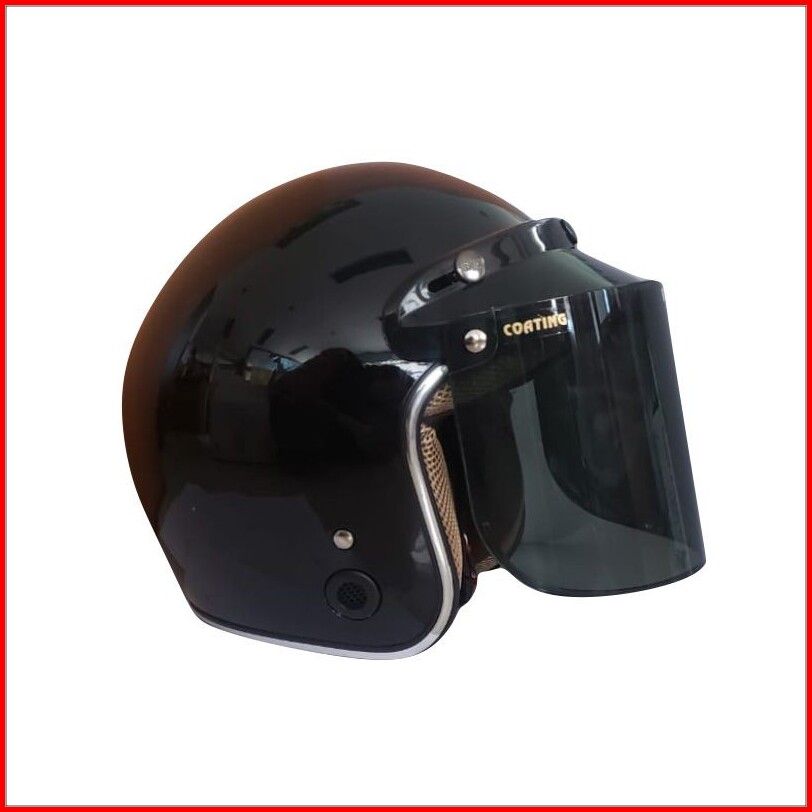 Helm Bogo Helm Retro Helm List Chrome Ant Black Kaca Datar