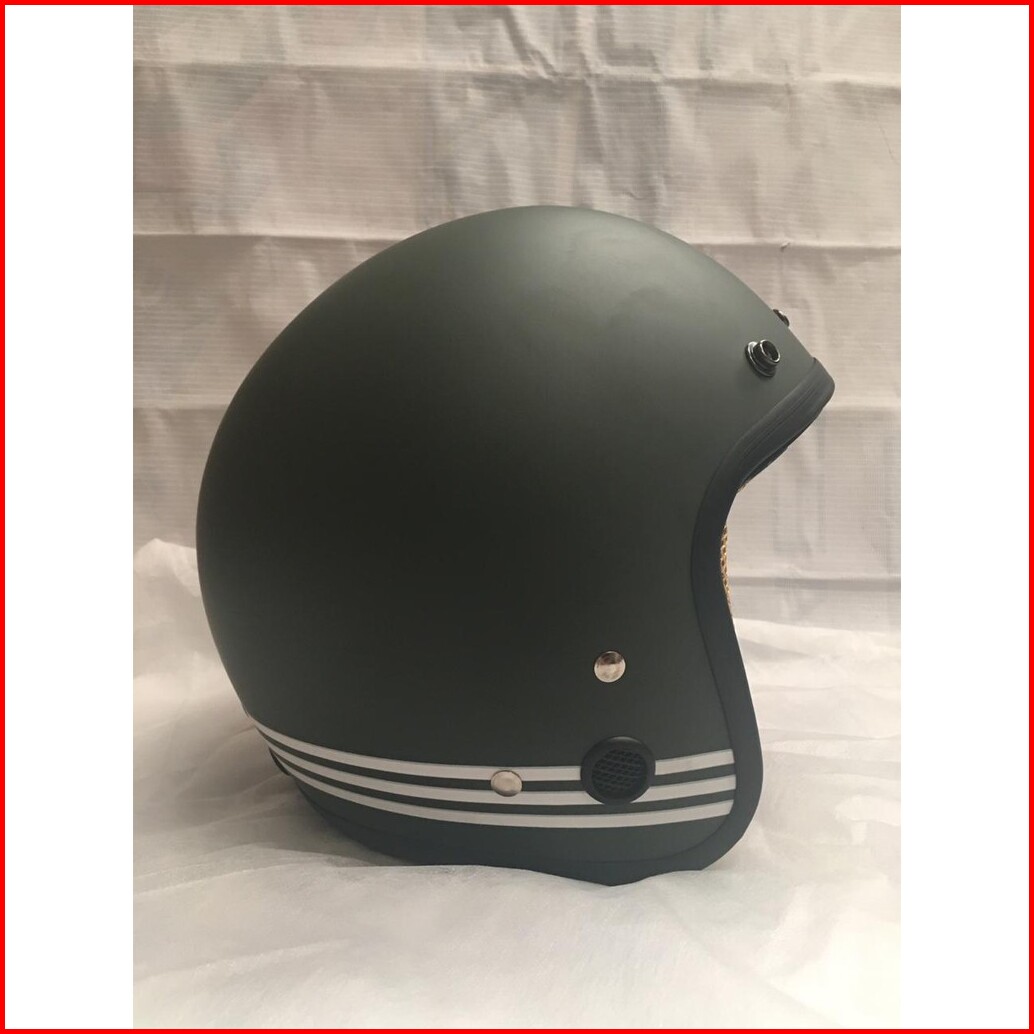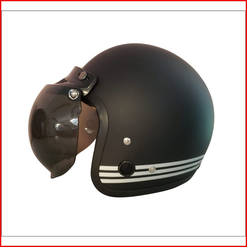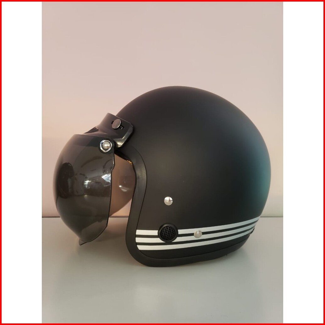 Helm Bogo Helm Retro Ant Stripe Solid Black Doff Kaca Cembung