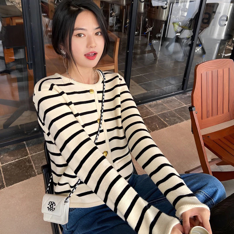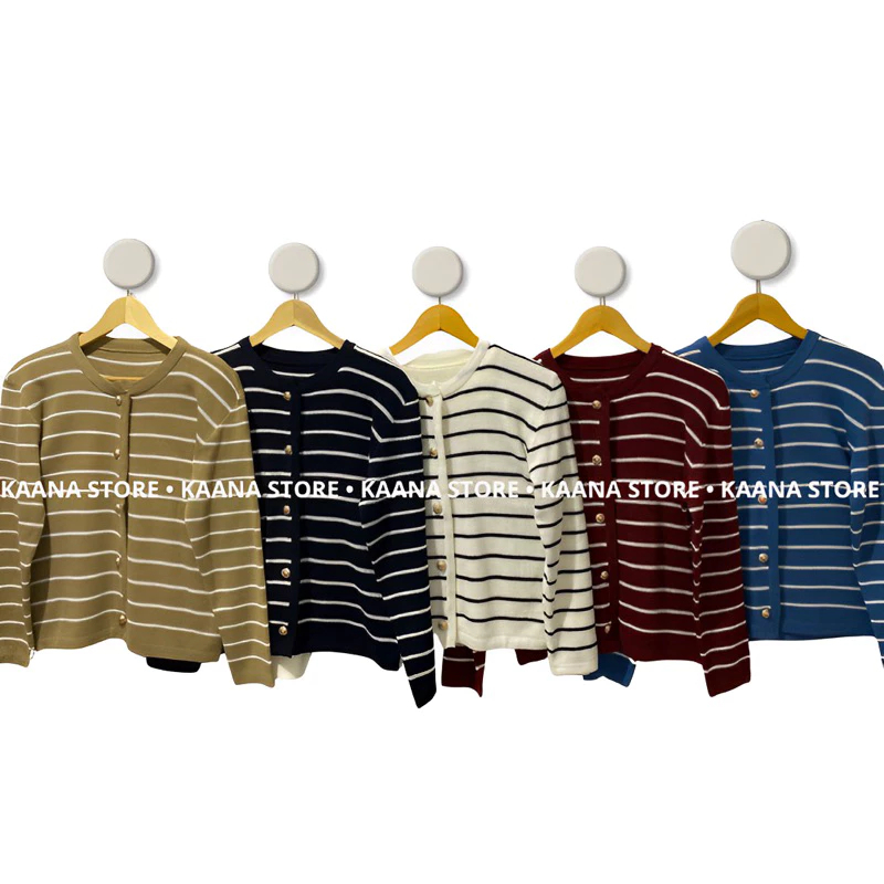 Cardigan Korean Style Lissa Series Knitwear Rajut Katun Import Premium Cardigan Wanita Motif Stripe Lengan Panjang Murah
