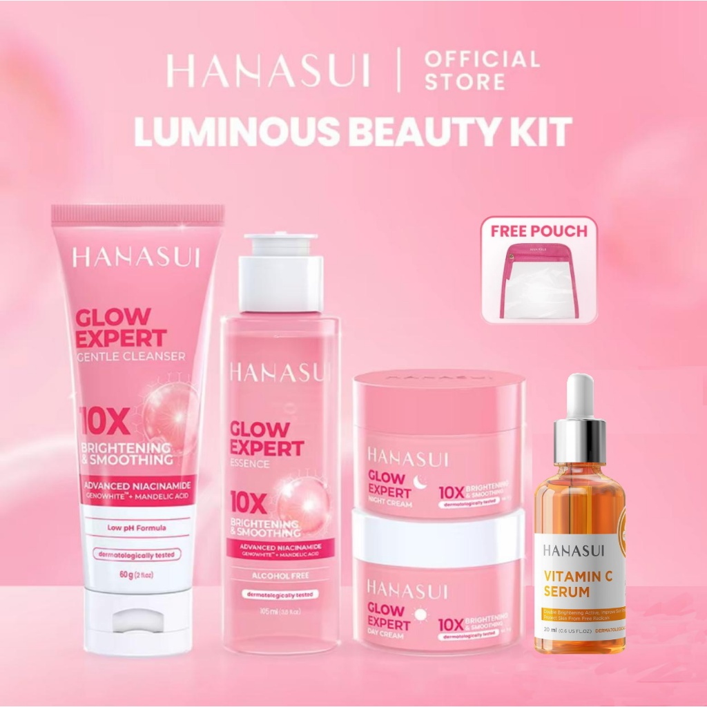 Paket Hanasui Glow Expert 5pcs ( Day + Night + Serum + Essence + Cleanser )