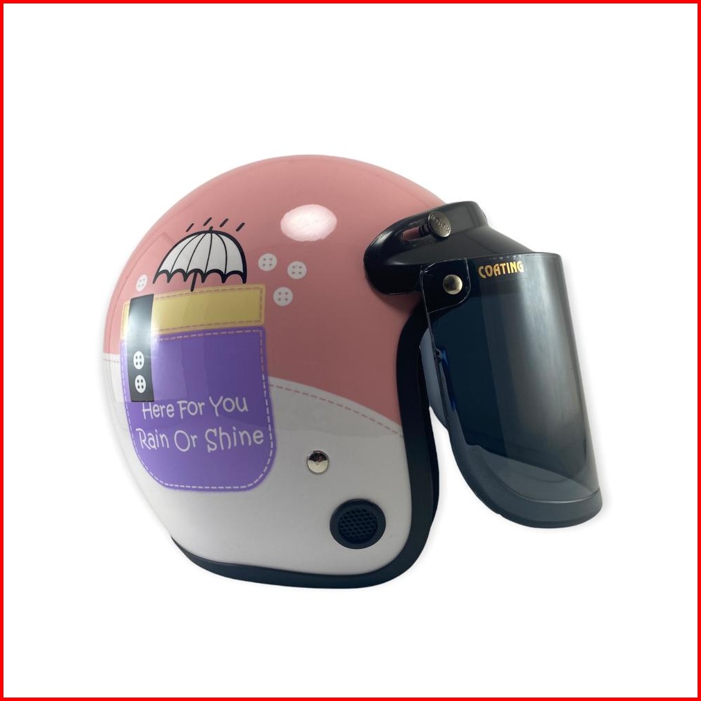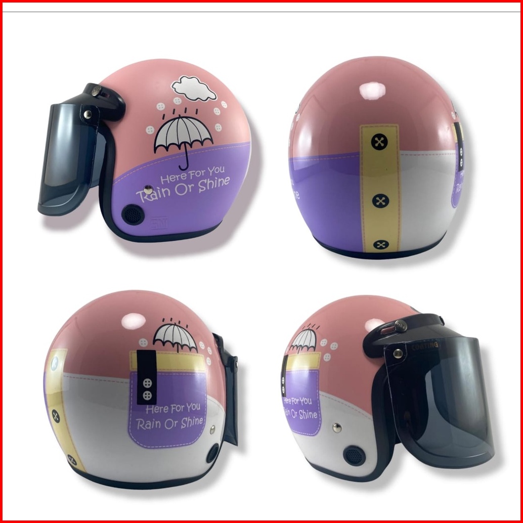Helm Bogo Retro Motif Umbrella Gloss Kaca Datar Helm Keren