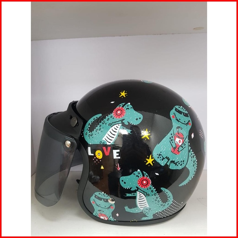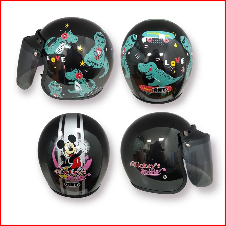 Helm Bogo Anak Helm Retro Kids Ant Mini Junior Hitam Kaca