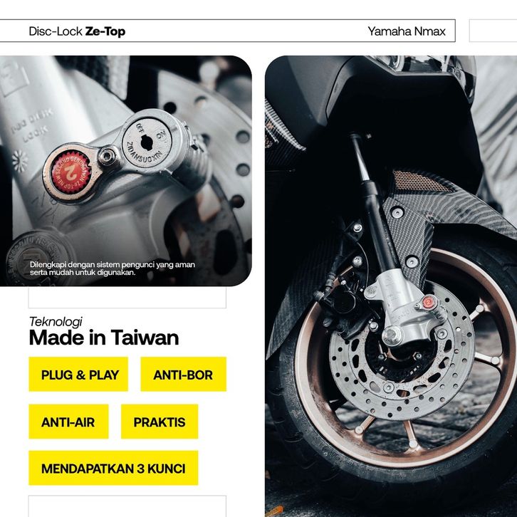 Anti Maling Kunci Cakram Disc Lock Gembok Anti Maling ZE TOP ALL NEW NMAX 2020 NMAX OLD dan PCX