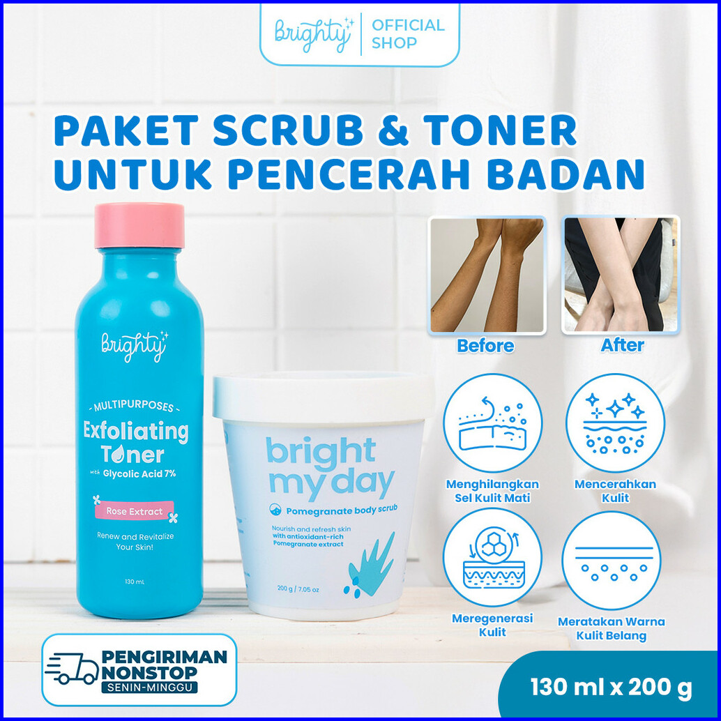 Brighty Multipurpose Exfoliating Toner X Bright My Day Bmd Pomegranate Body Scrub Pemutih Badan Pencerah Badan Pencerah