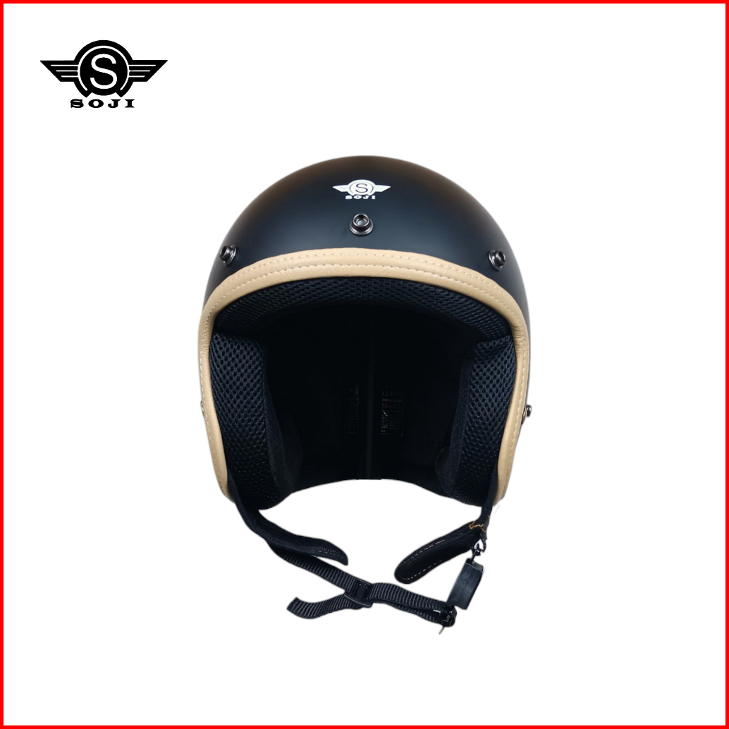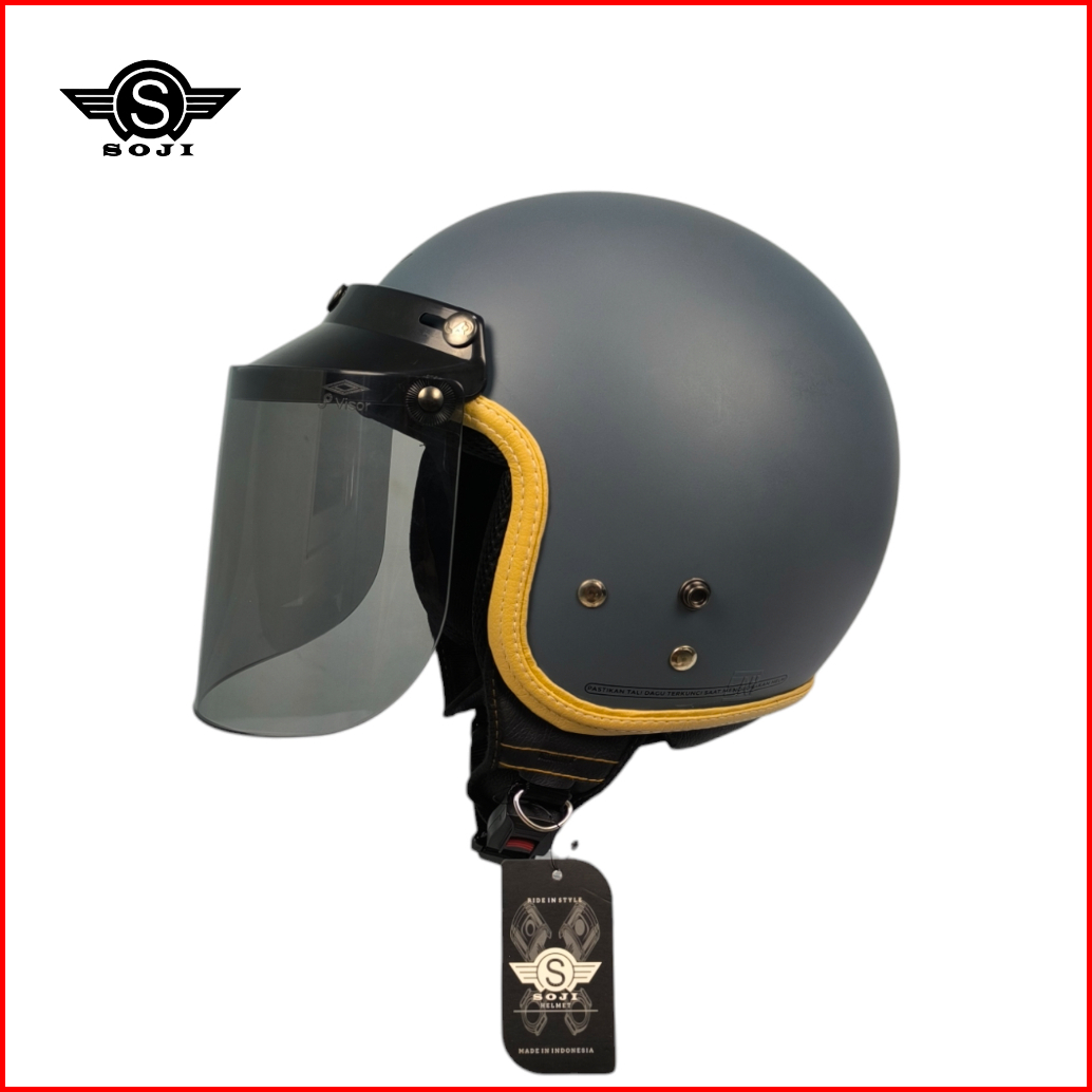 Soji Helm Retro Classic Reno Solid Dewasa Kaca Datar Hitam