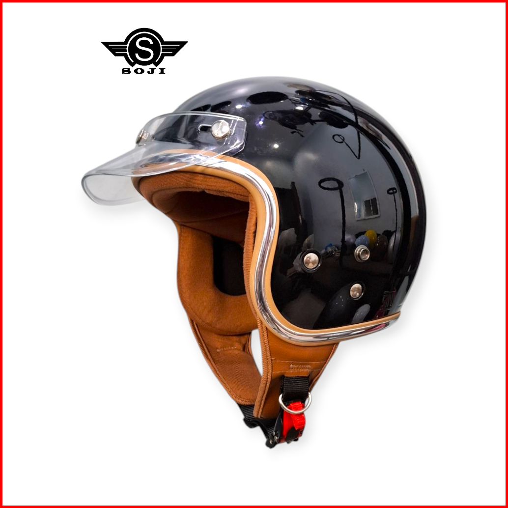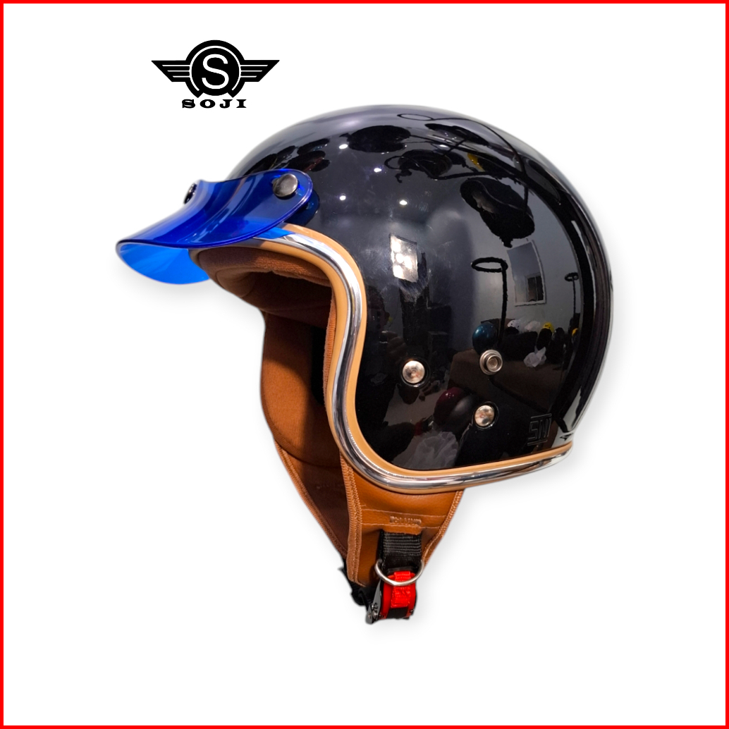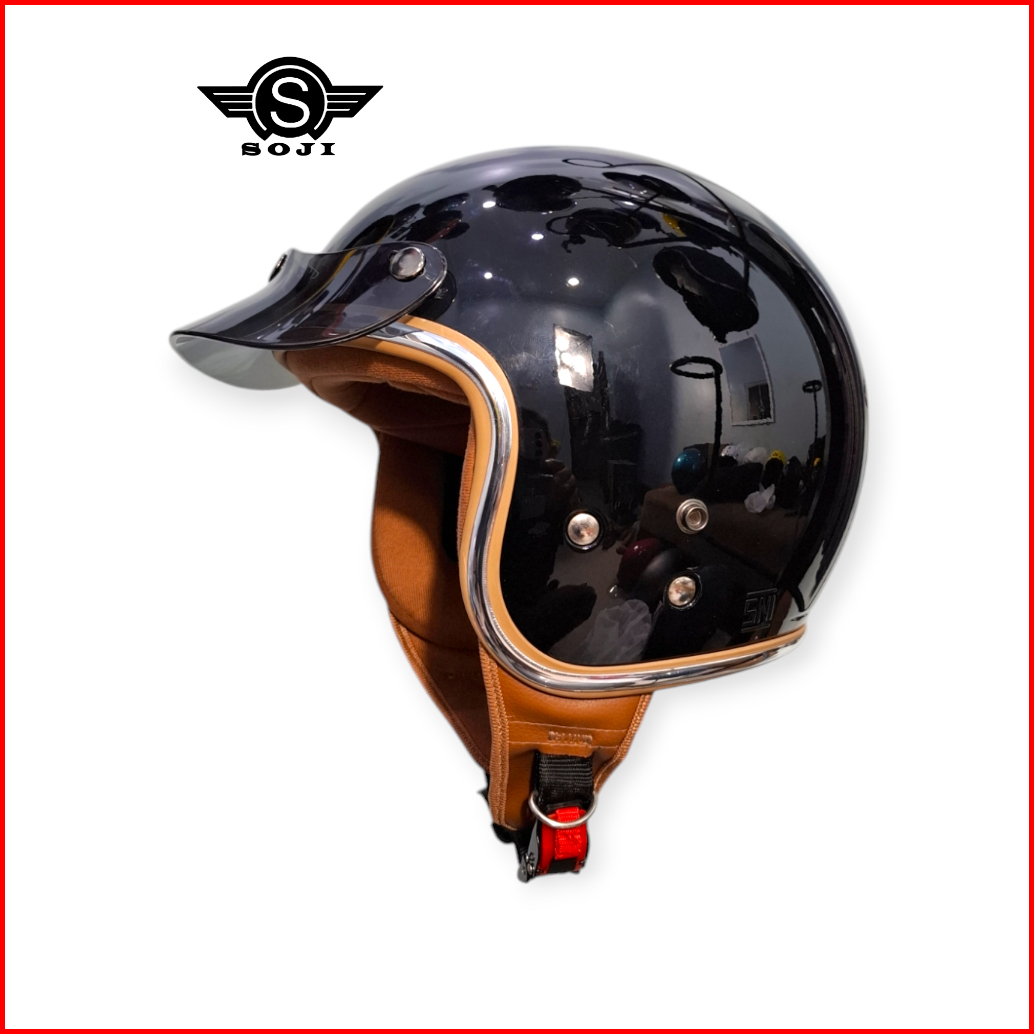 Soji Raya Helm Retro Dewasa Hitam Glos Full Leher