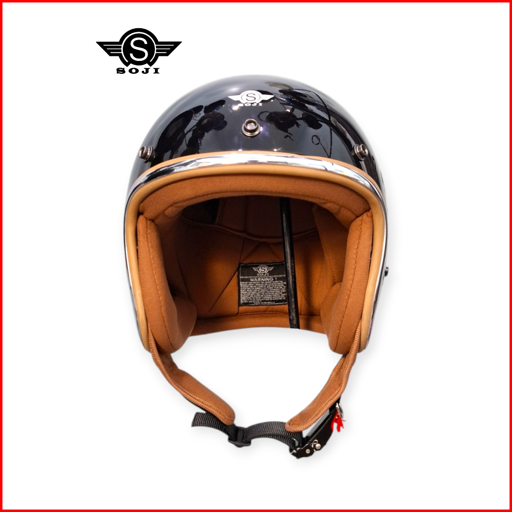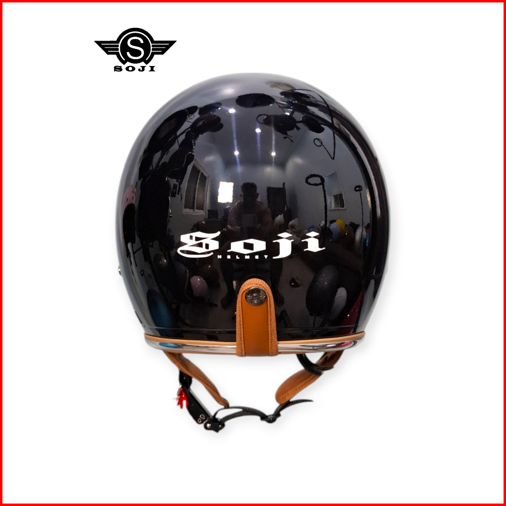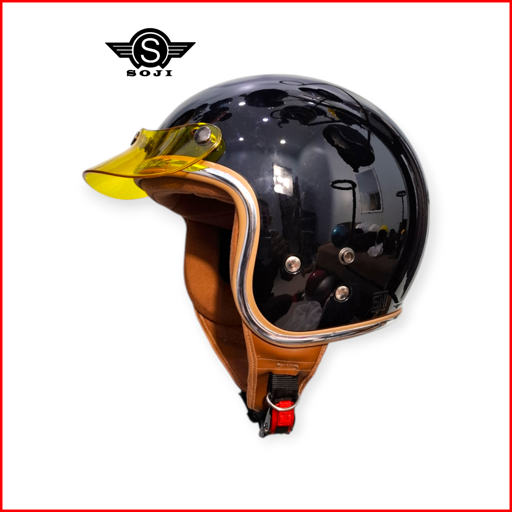 Soji Raya Helm Retro Dewasa Hitam Glos Full Leher