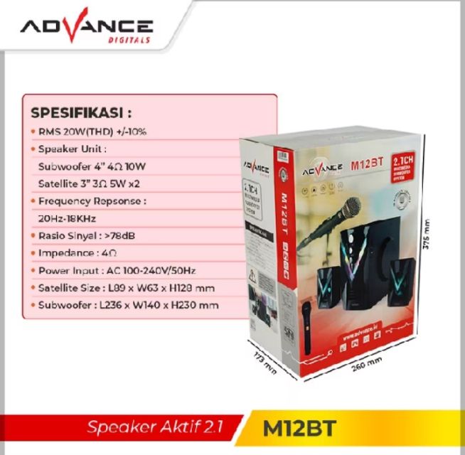 Speaker Advance M15BT Stereo Bluetooth Xtra Bass Subwoofer Free Mic
