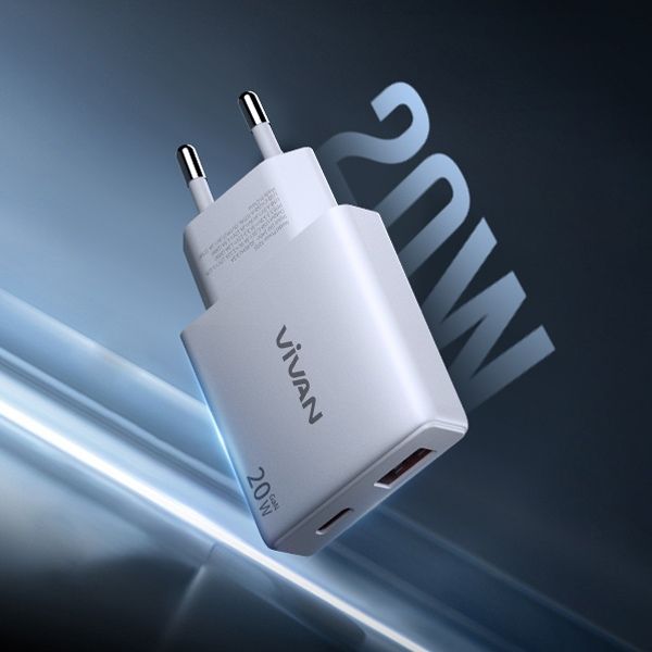 Vivan Power X20S Slim Dual USB-C USB-A GaN Charger 20W PD QC3.0 + Cable USB-C to USB-C Set Original Garansi Resmi