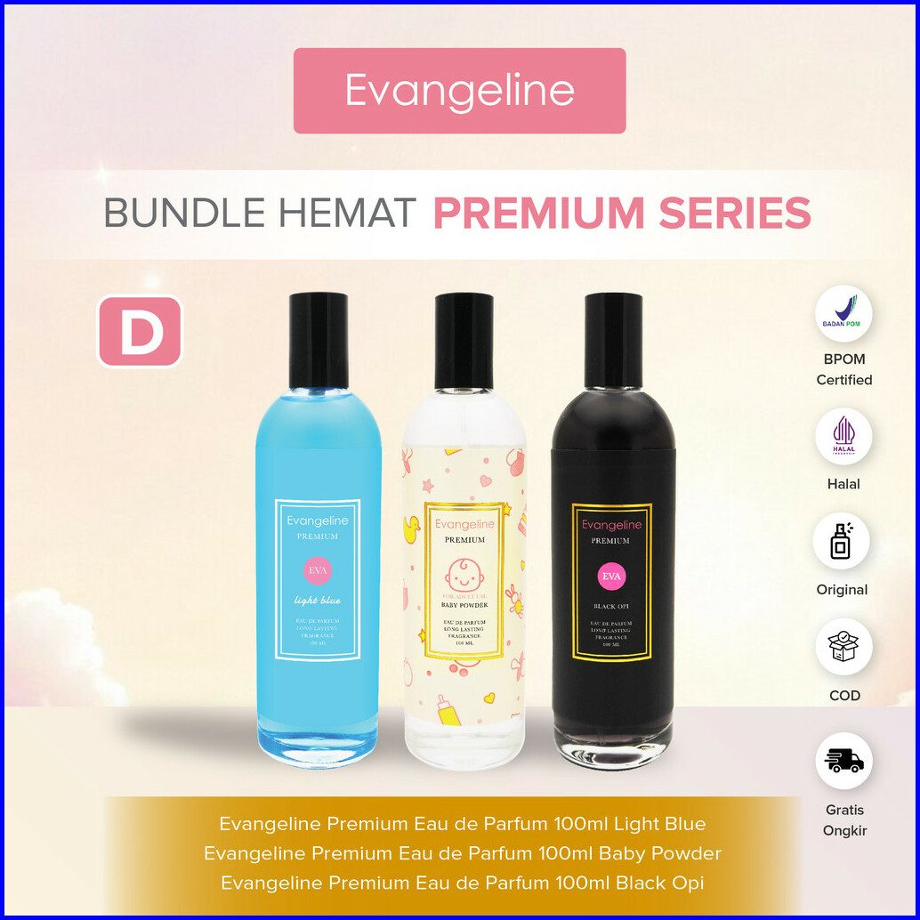 Get 3 Pcs - Evangeline Premium Bundle D Parfum Edp 100ml Evangeline Premium Light Blue - Black Opi - Baby Powder Parfum