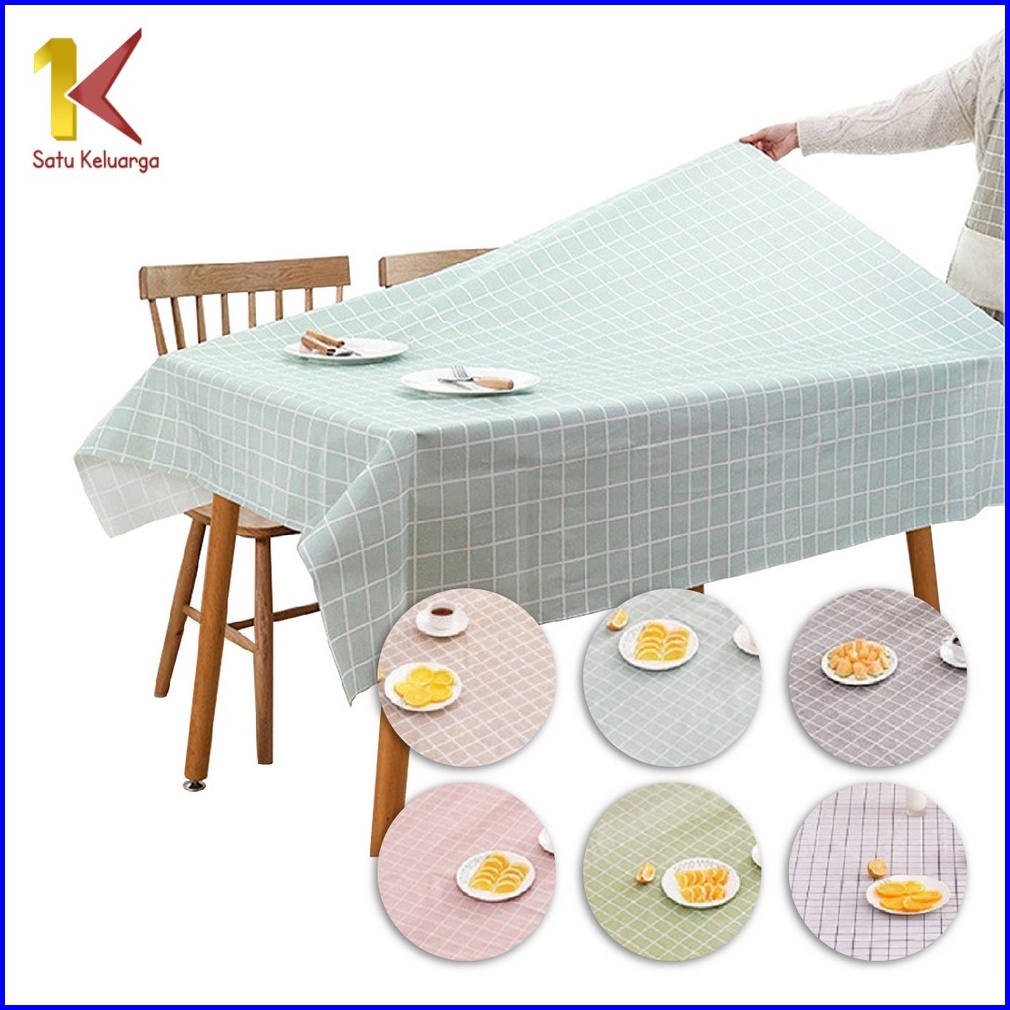 Satu Keluarga Taplak Meja C288 Alas Meja Makan Anti Air Motif Kotak-kotak Bahan Peva Taplak Meja Ruang Tamu Persegi Panj