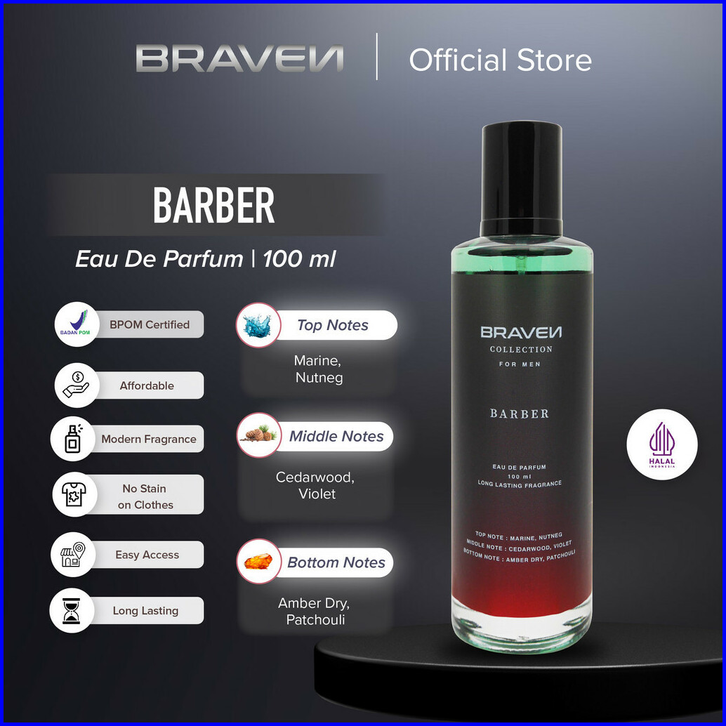 Braven Collection Eau De Parfum Barber 100ml - Parfum Pria Terlaris Viral - Parfum Tahan Lama Best Seller