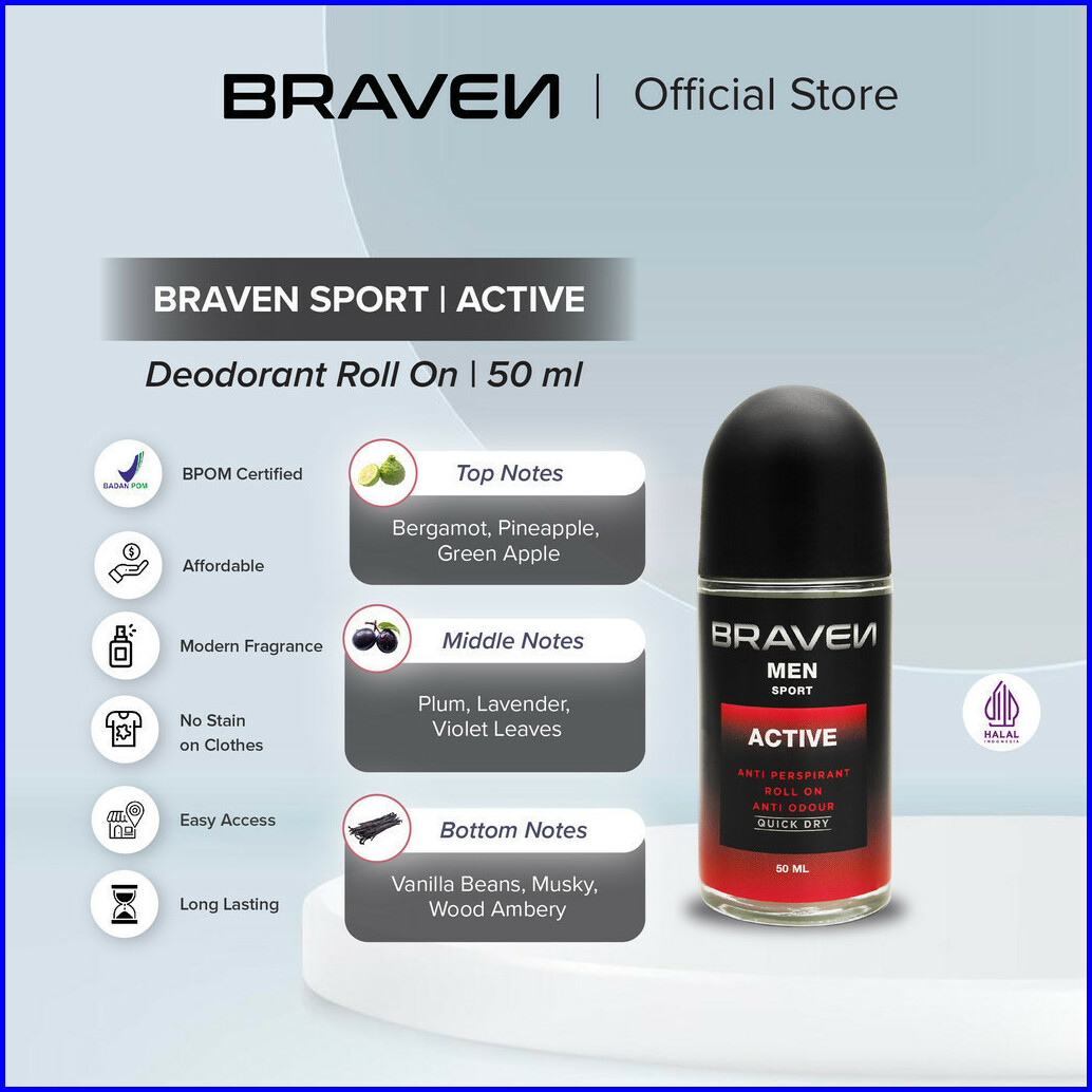 Braven Roll On Active Deodorant Antiperspirant Perlindungan Sepanjang Hari Deodorant Cowok Ketiak Kering