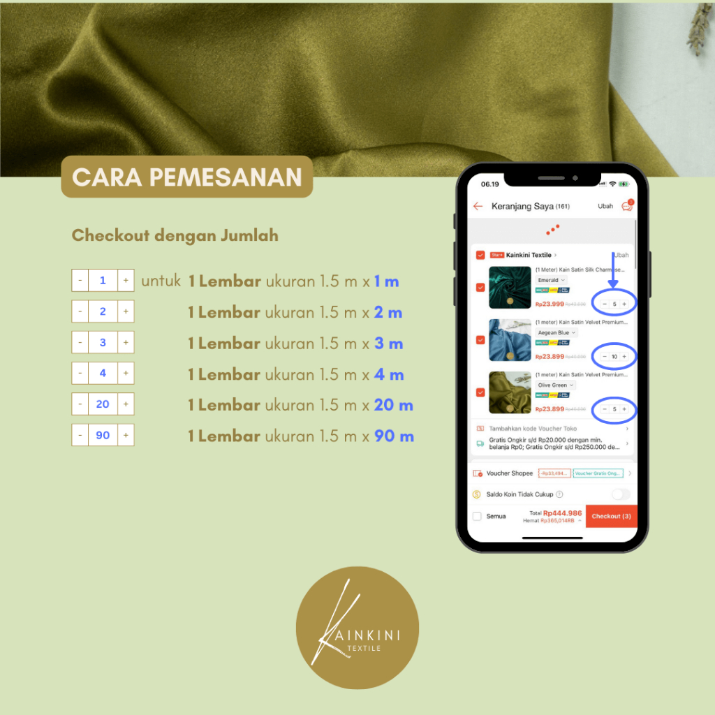 (1 Meter) Kain Satin Gradasi Velvet Premium Original - Bahan Furing Gaun Silk Ombre Two Tone