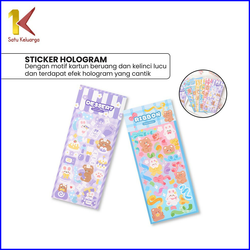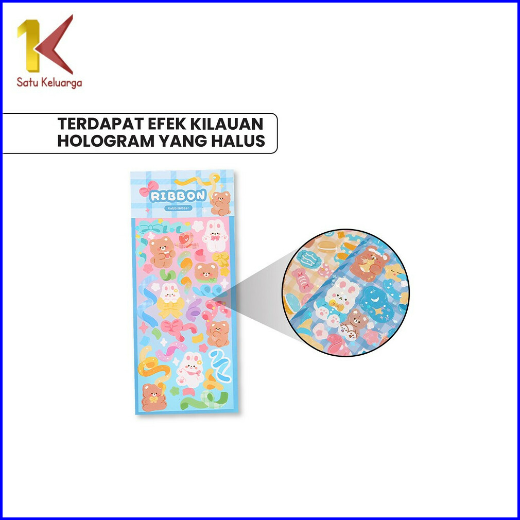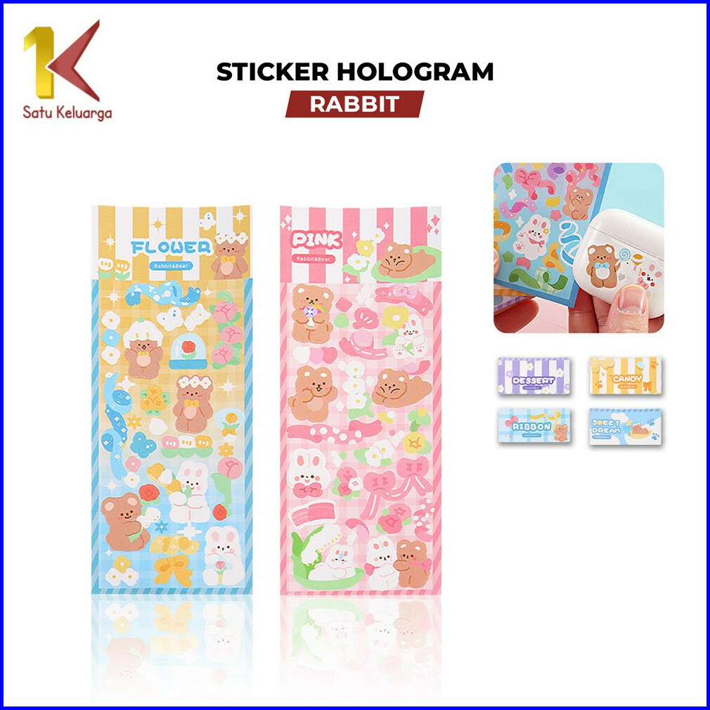 Satu Keluarga Sticker Waterproof Kartun Bear Rabbit Hologram C1107 Stiker Motif Cute Decoration