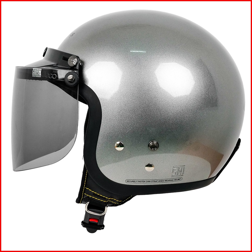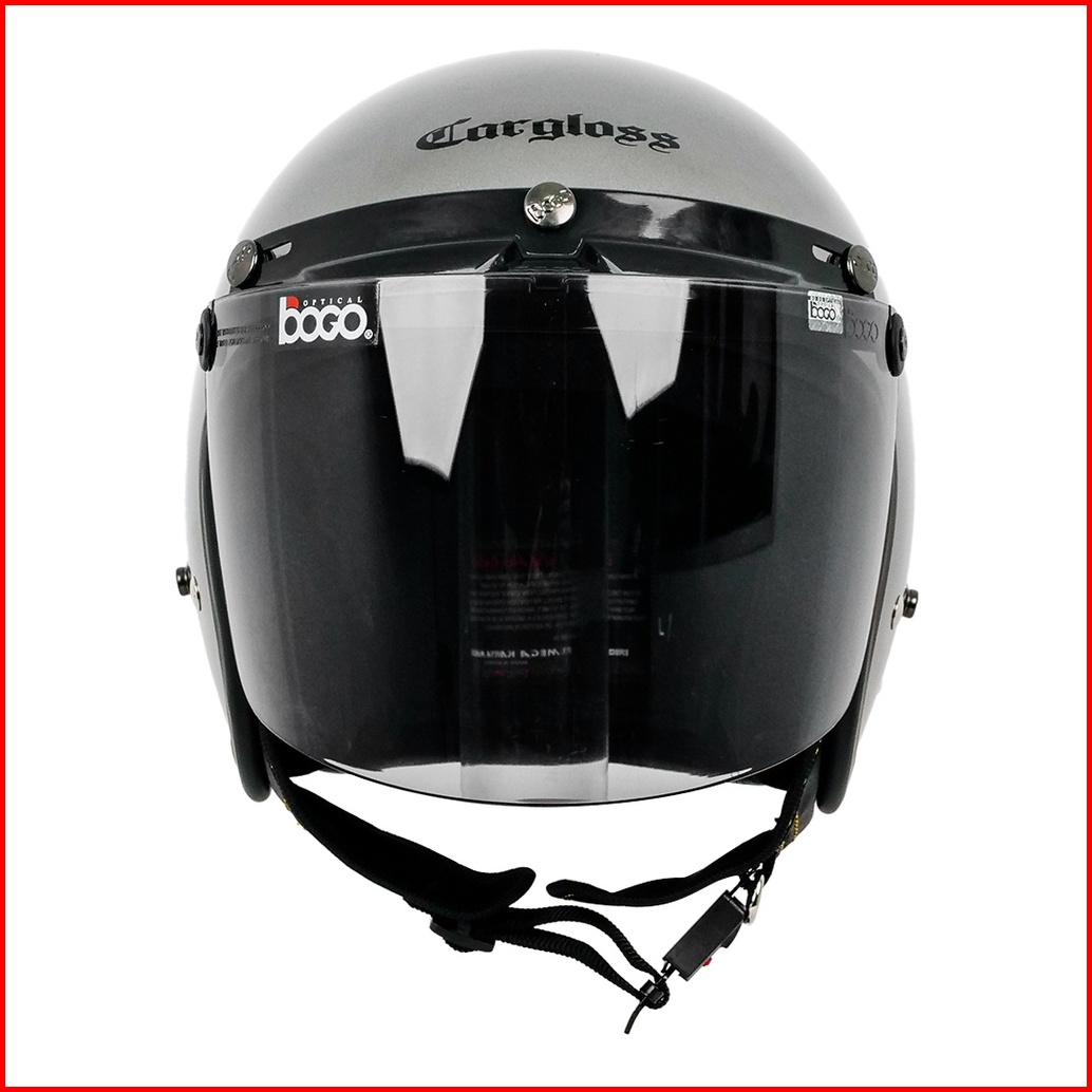 Cargloss Cfm Retro Visor Flat Smoke Helm Half Face - Silver Met Gloss
