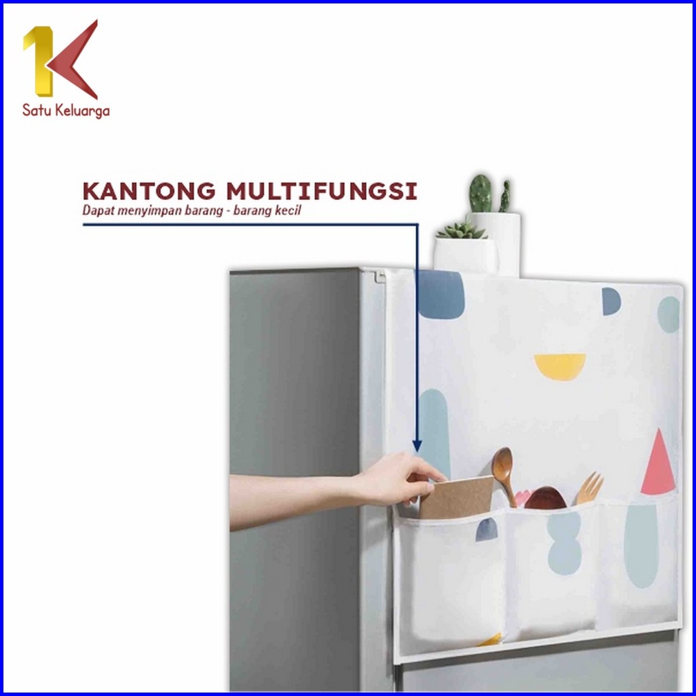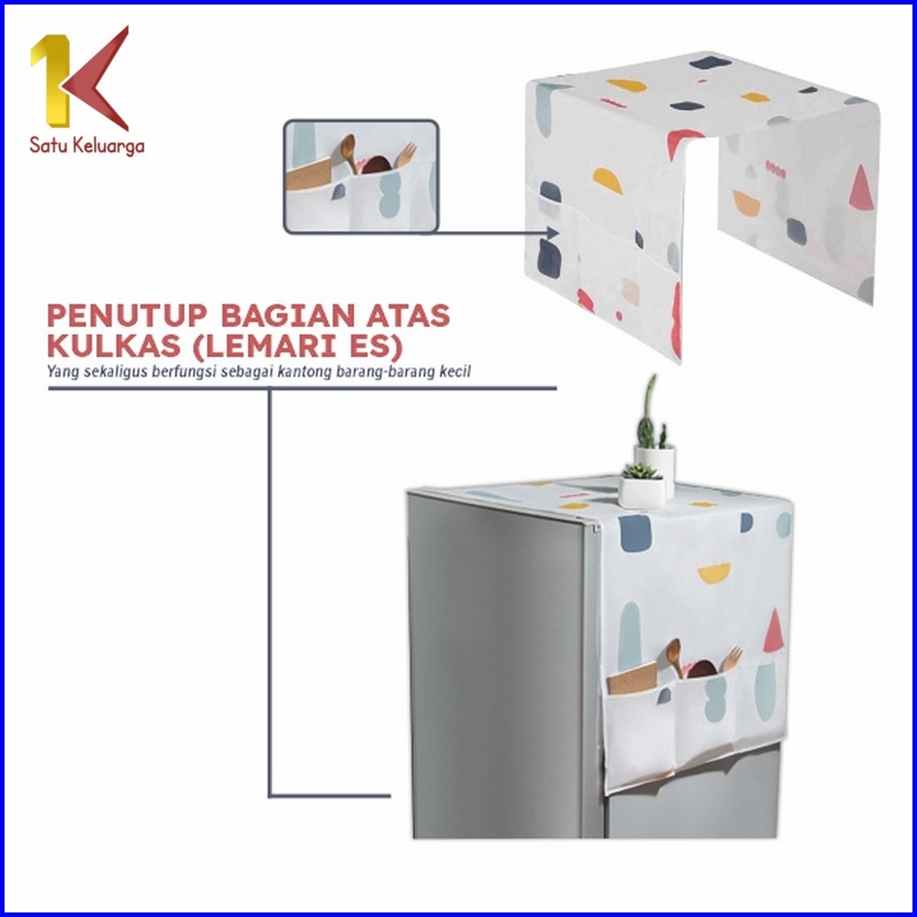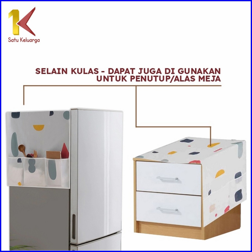 Satu Keluarga Taplak Kulkas C116 Cover Penutup Kulkas Anti Air Sarung Alas Dgn Tempat Penyimpanan
