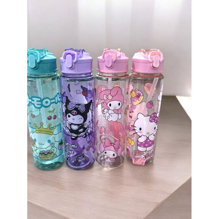 KKM BOTOL MINUM 900 mili Bening Plastik BPA Free Karakter Lucu Anak Perempuan ada Sedotan dan Tali Pegangan