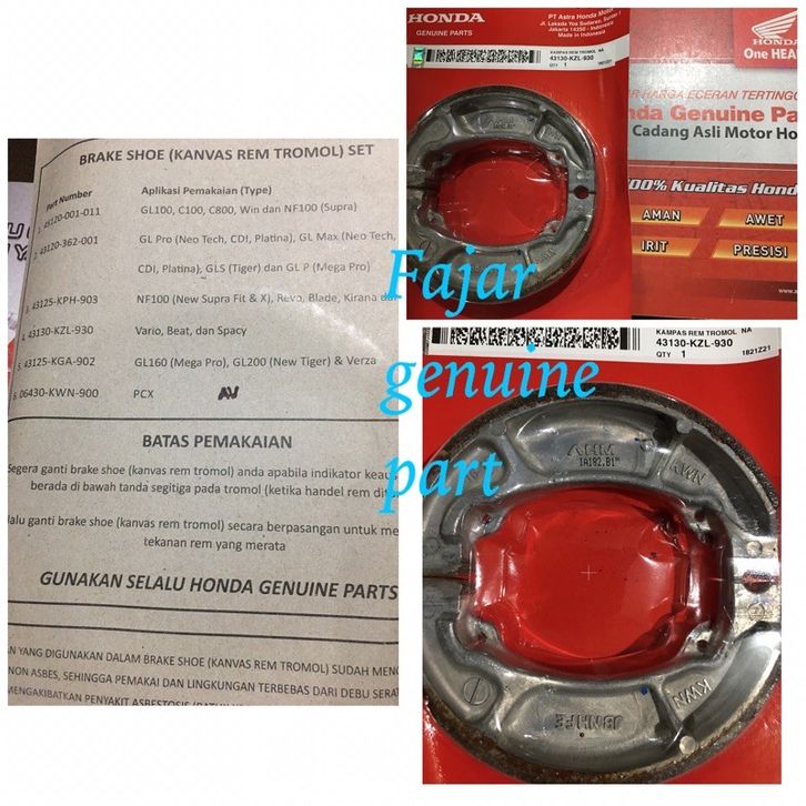 Brake shoe pirodo kampas rem belakang beat vario 4313KZL93 AHM