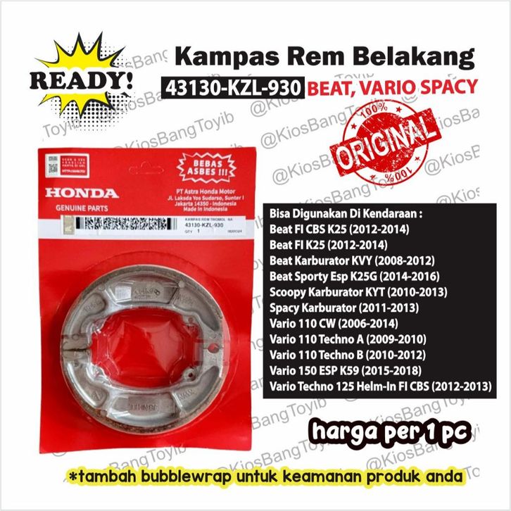 PAHE Kampas Rem Depan & Belakang ORINAL HONDA Vario, Beat, Scoopy, Spacy KVB KZL