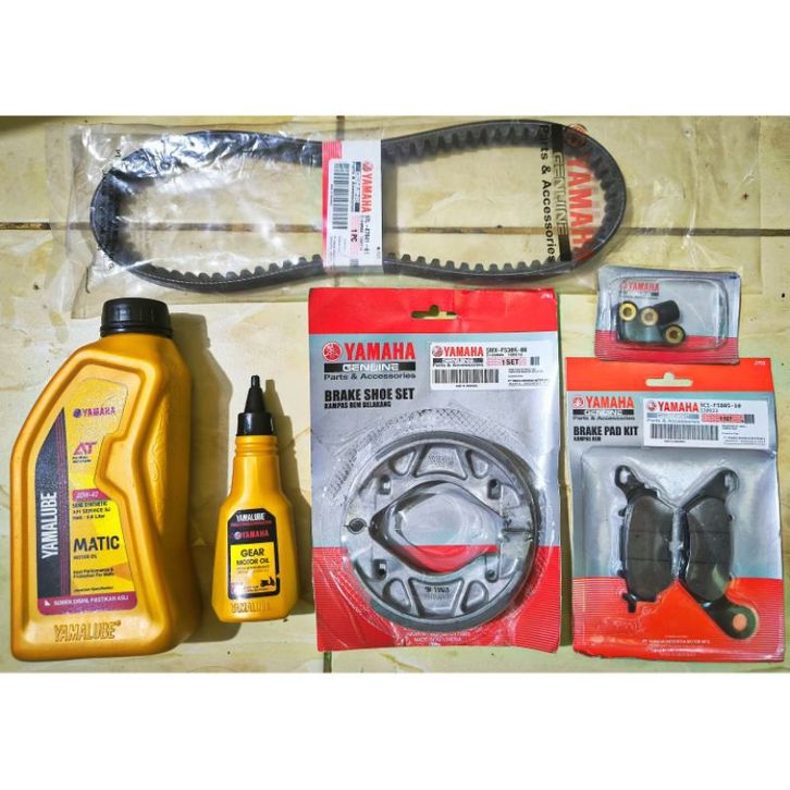 Kampas rem depan dan rem belakang + Oli Yamalube matic + Oli gardan + Vbelt + roller 5TL Yamaha Mio