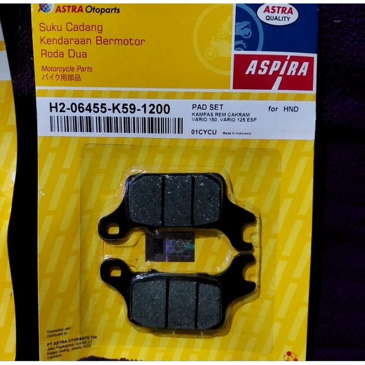 PAKET HEMAT Kampas Rem Belakang Vario 15 Vario 125 Orinal Aspira
