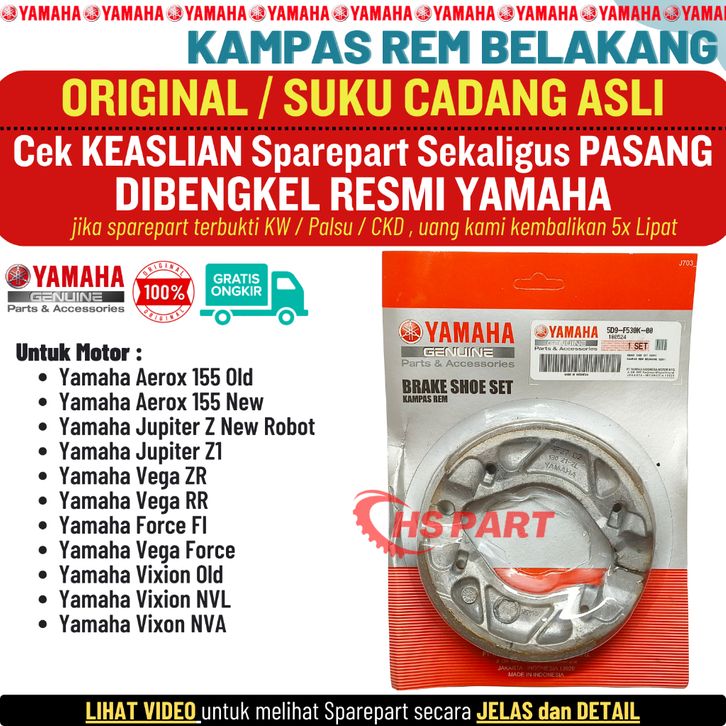 Kampas Rem Belakang Vega ZR RR Force Jupiter Z Z1 New Robot Vixion Old NVL NVA Orinal Yamaha 1%