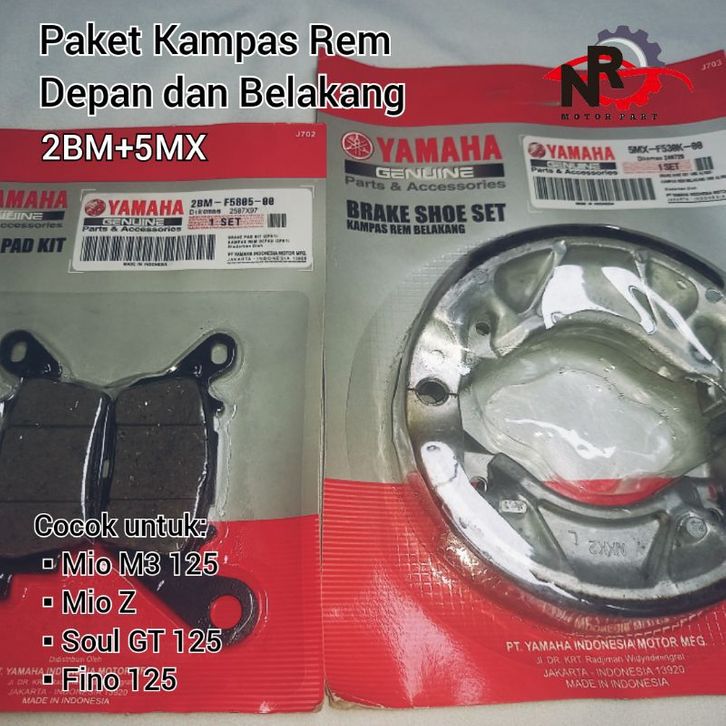 Paket Kampas Rem Depan 2BM dan Tromol Belakang 5MX Motor Mio M3 125 Mio Z Mio S Fino 125 Soul GT 125