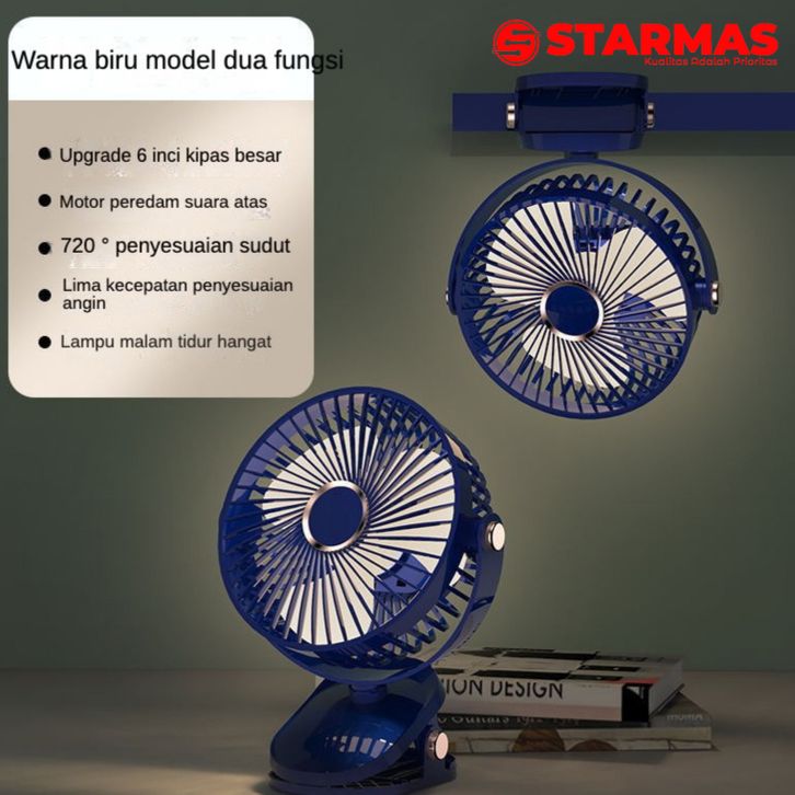 STARMAS Klip Desktop 2-in-1 USB Kipas Kecil Isi Ulang Kipas Angin Berputar Mini dengan Lampu Malam Senyap Portabel Sisw