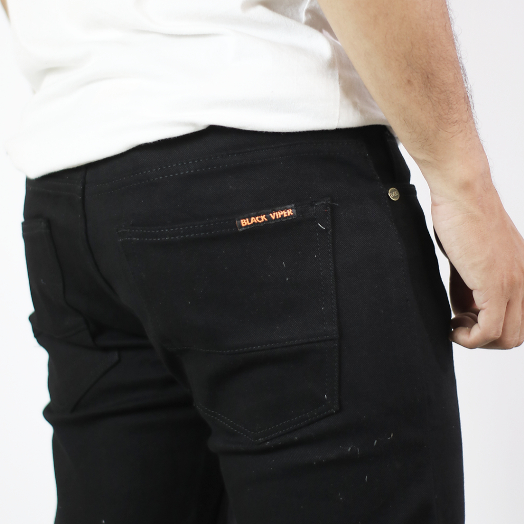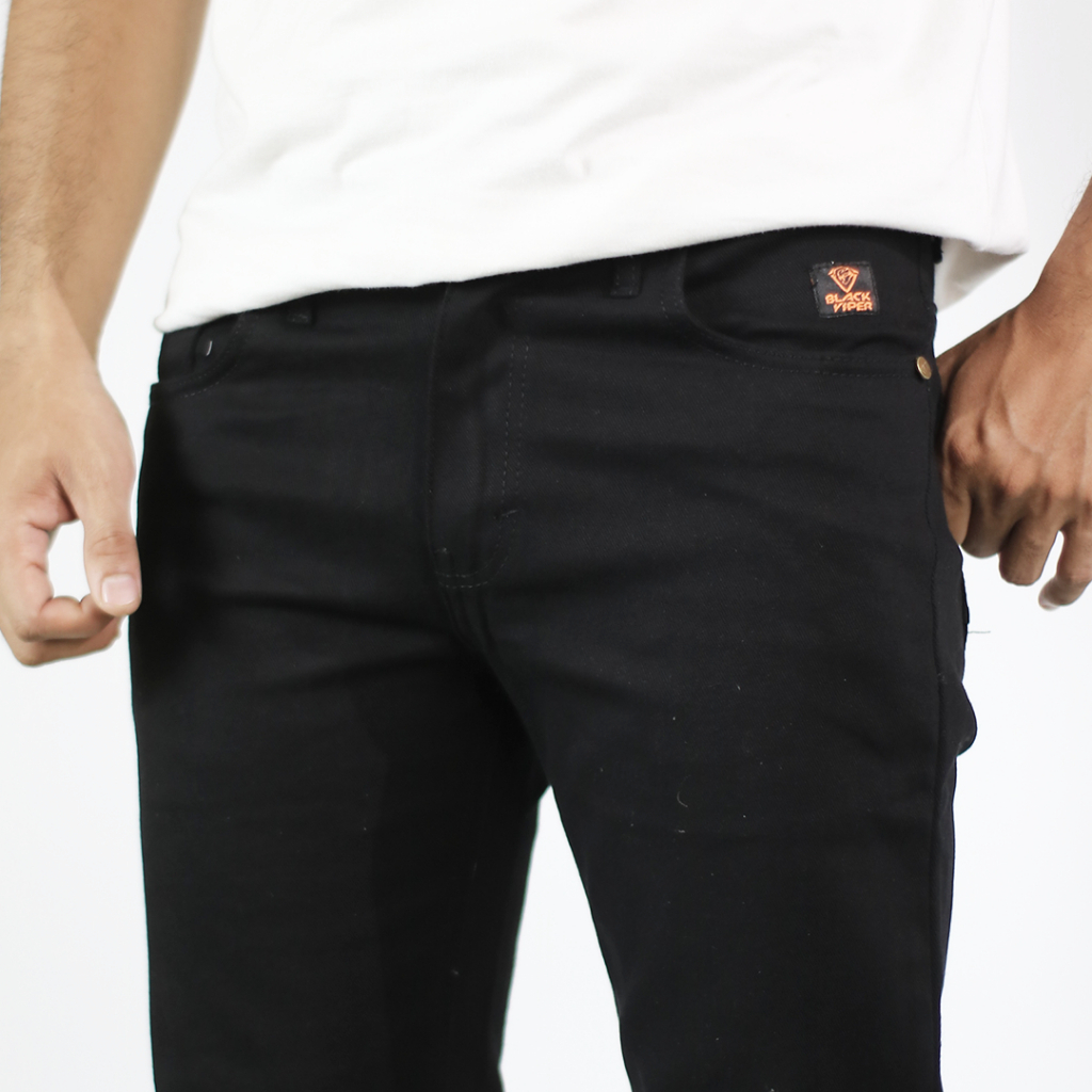 BLACKVIPERDNM Celana Jeans Panjang Pria Slim Fit Denim Stretch Hitam Pekat Model Naomi