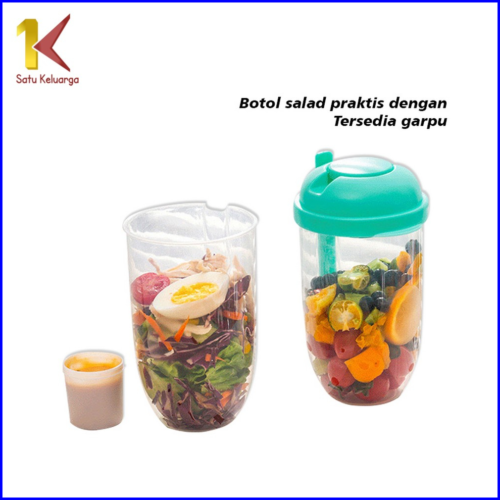 Satu Keluarga Botol Salad 1000ml Dengan Sendok Garpu Botol Saus Kecil C863 Tempat Makan Buah Sayur Salad Transparan Bpa