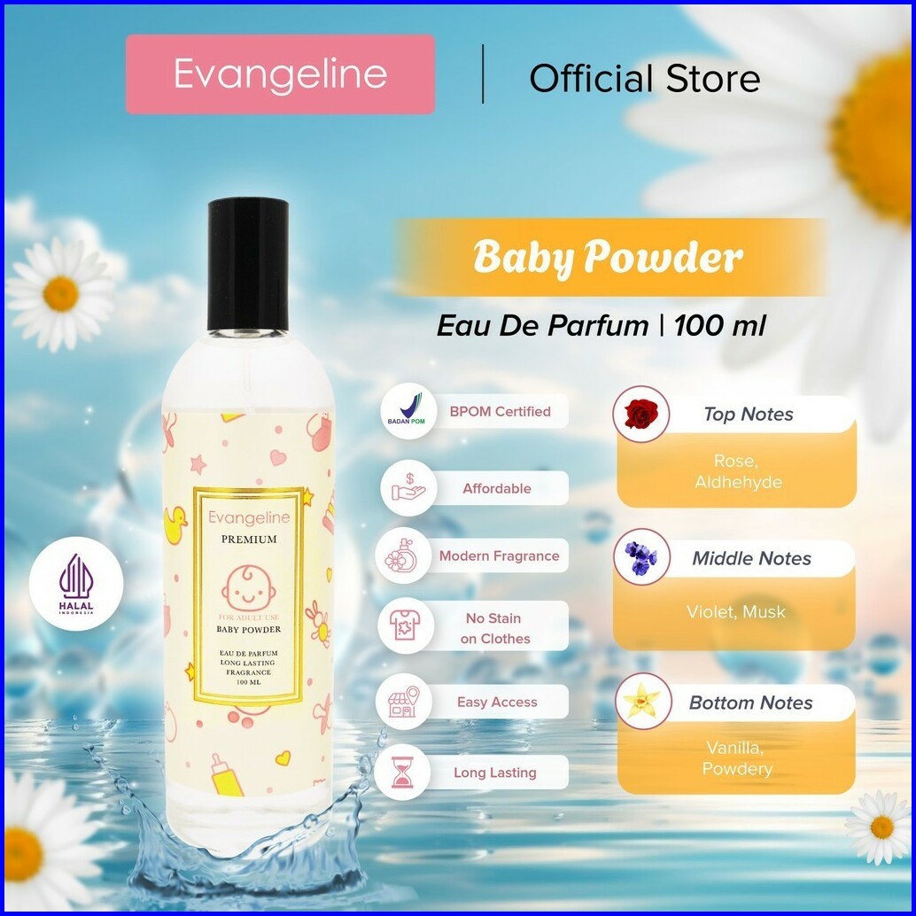 Evangeline Premium Eau De Parfum Baby Powder 100ml - Parfum Wanita Edp - Wangi Bayi - Parfum Tahan Lama Best Seller