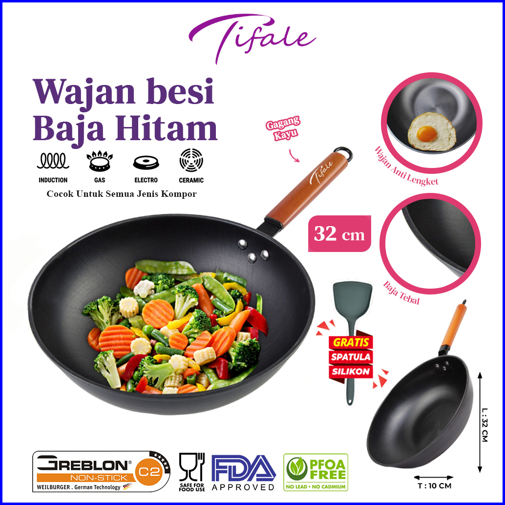 Tifale Premium Fry Pan Antilengket 32 Cm Wajan Penggorengan Anti Lengket Cook Clean Fry Pan Free Spatula