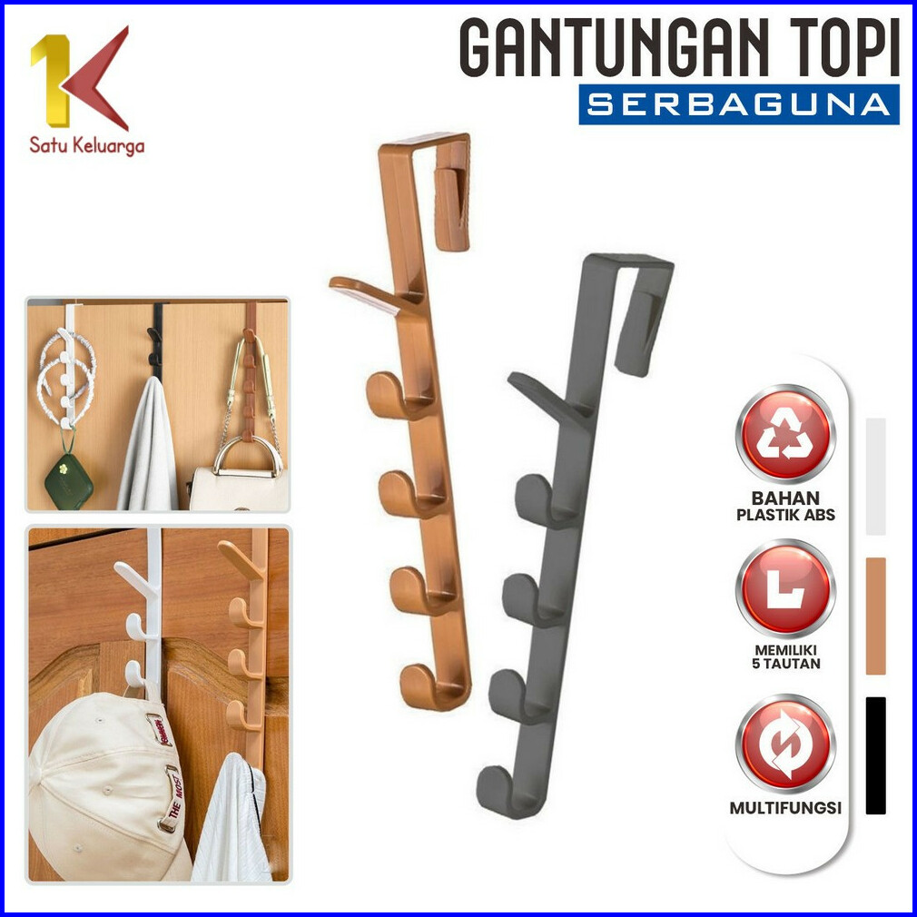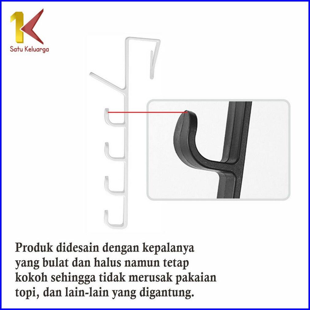 Satu Keluarga Gantungan Pintu Lemari Baju Topi Tas 5 Hook Tanpa Paku C959 Hanger Gantungan Baju Jemuran Pakaian Multifun